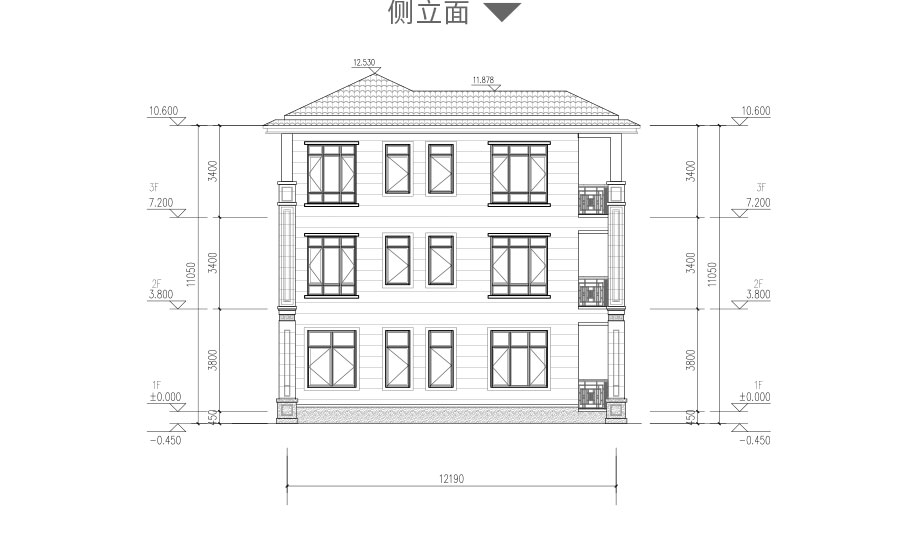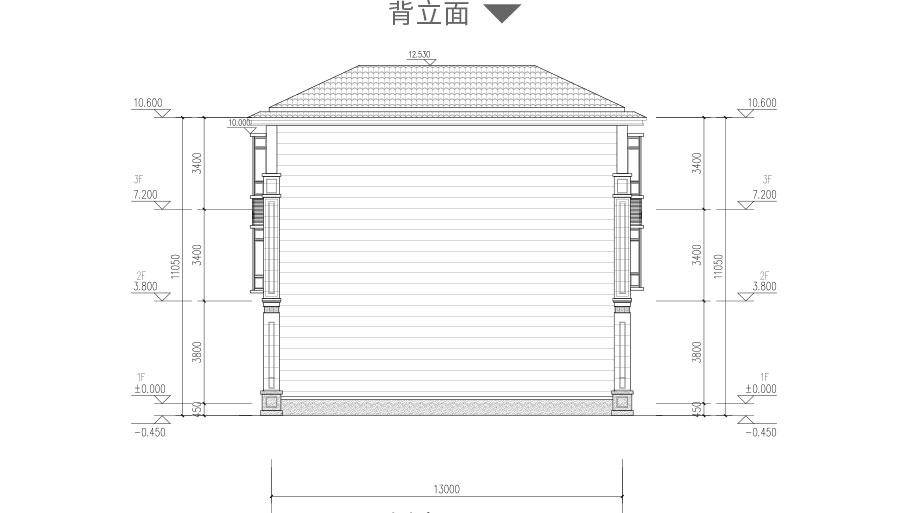 | 開間:13米 | 進深:12.19米 | 占地面積:163平方米 | 建筑面積:424.1平方米 |