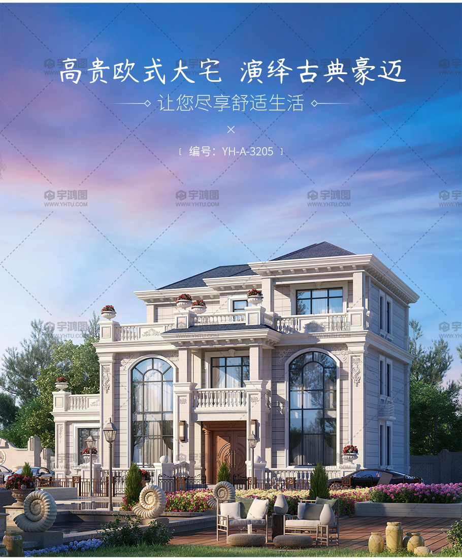 | 風格:歐式 | 層數(shù):三層 | 結(jié)構(gòu)形式:框架結(jié)構(gòu) | 圖紙編號:YH-A-3205 |