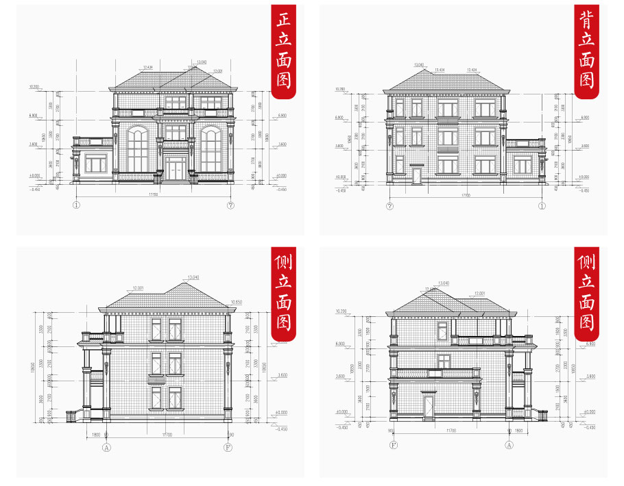 | 建筑圖: | 建筑平面圖:一層平面圖,二層平面圖,三層平面圖; 建筑立面圖:東立面圖,西立面圖,南立面圖,北立面圖,剖面圖; 大樣圖:樓梯詳圖,細部大樣,門窗大樣 |