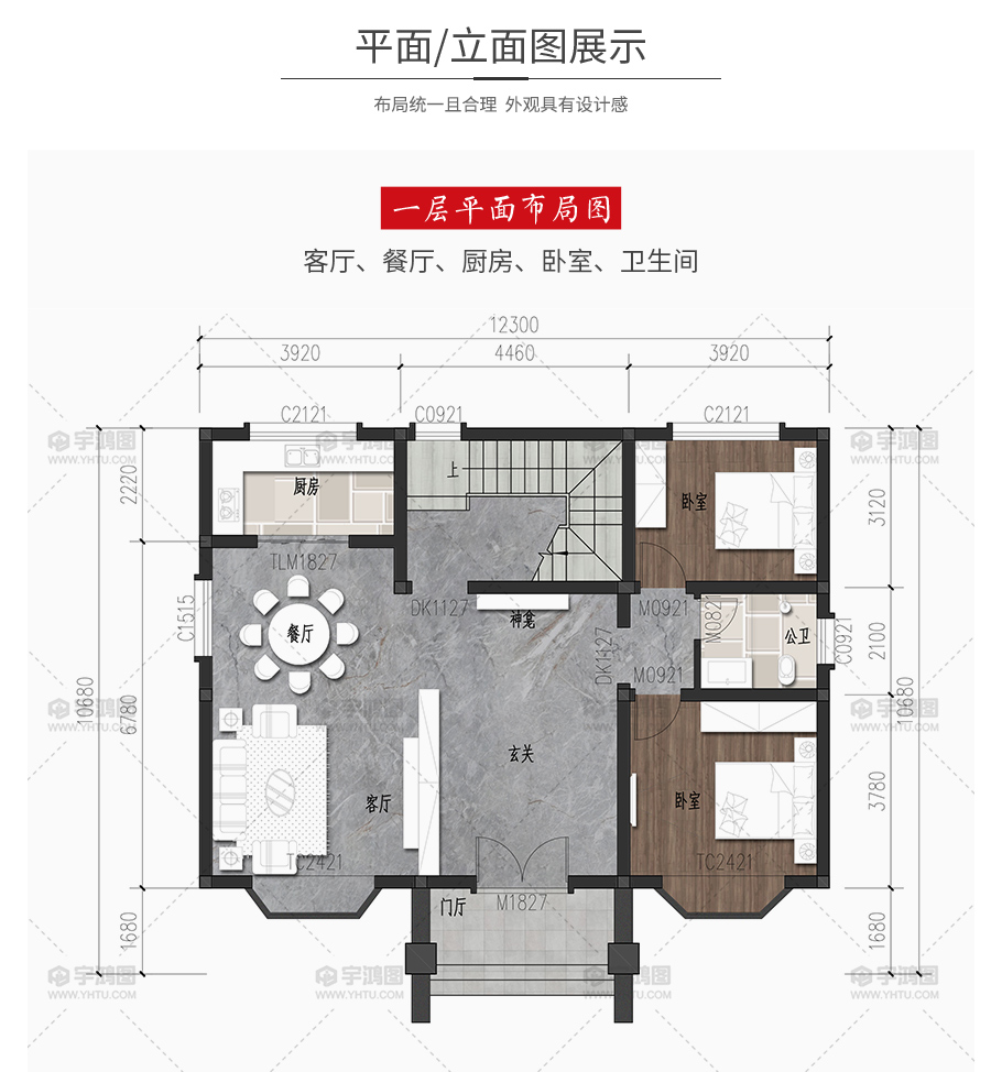 | 開間:12.3米 | 進深:10.68米 | 占地面積:116平方米 | 建筑面積:243平方米 |