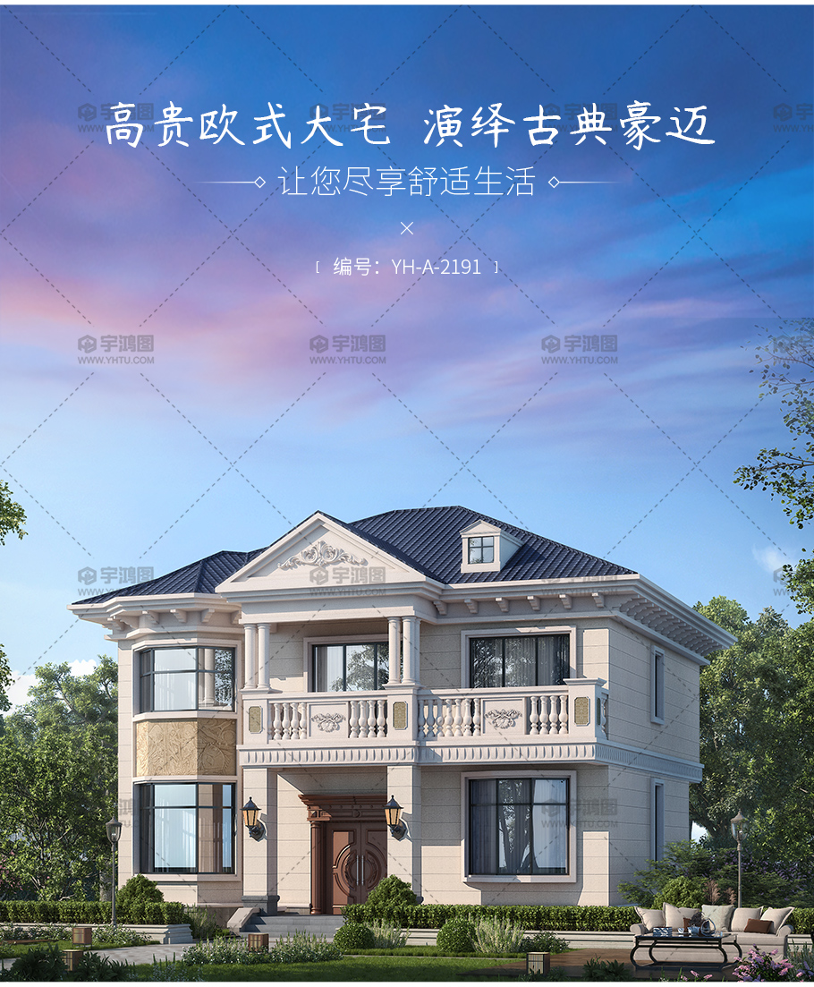 | 風格:歐式 | 層數(shù):二層 | 結構形式:磚混結構 | 圖紙編號:YH-A-2191 |