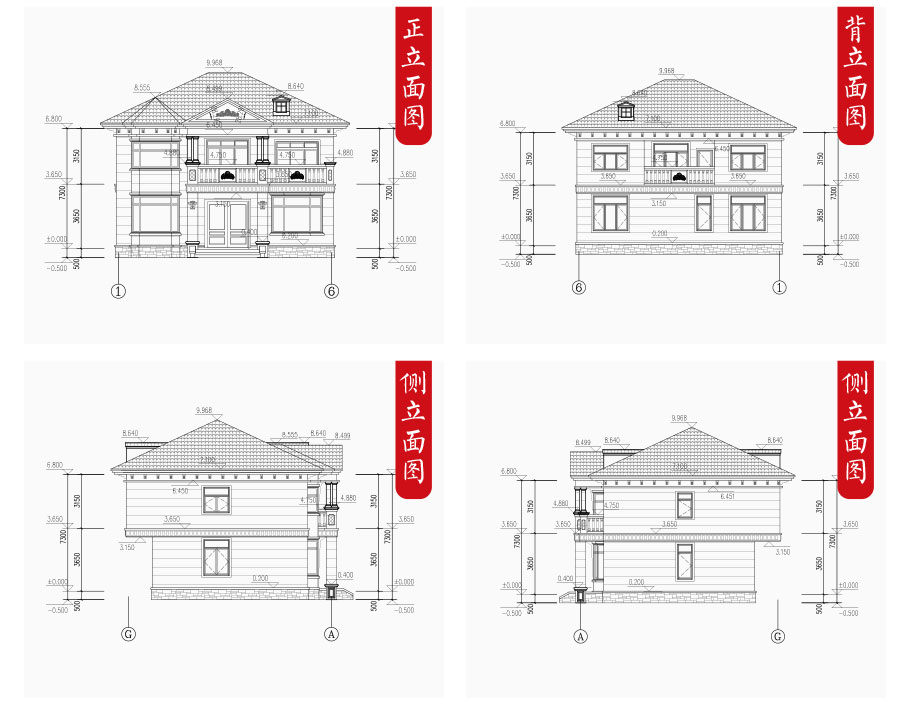 | 建筑圖: | 建筑平面圖:一層平面圖,二層平面圖; 建筑立面圖:東立面圖,西立面圖,南立面圖,北立面圖,剖面圖; 大樣圖:樓梯詳圖,細部大樣,門窗大樣 |