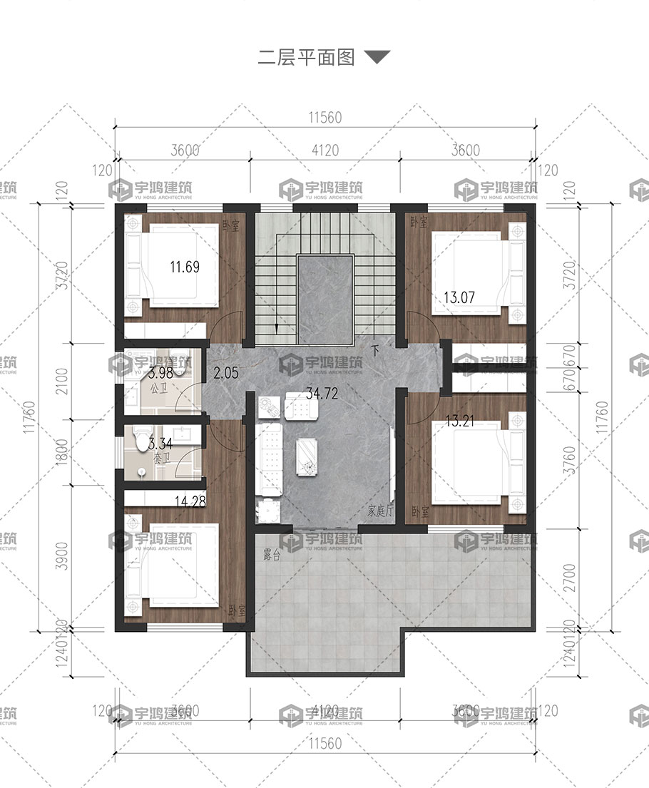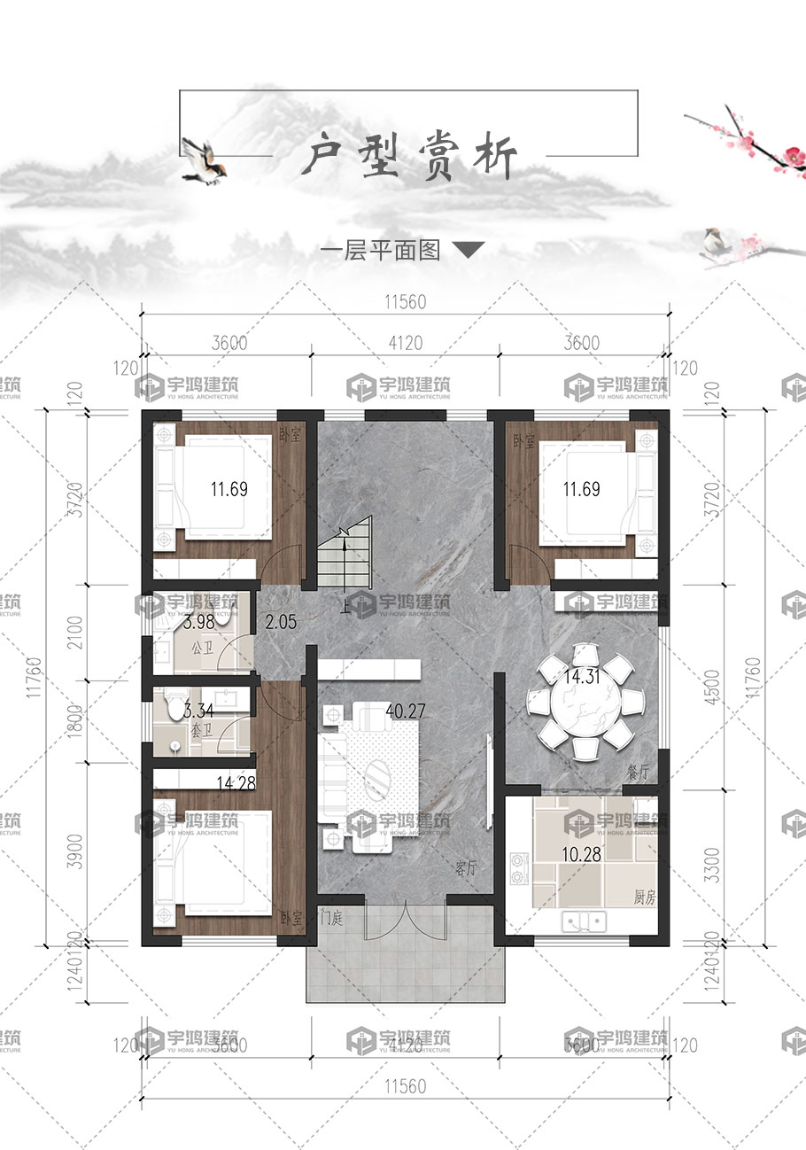 | 開間:11.56米 | 進深:11.76米 | 占地面積:132.5平方米 | 建筑面積:252平方米 |