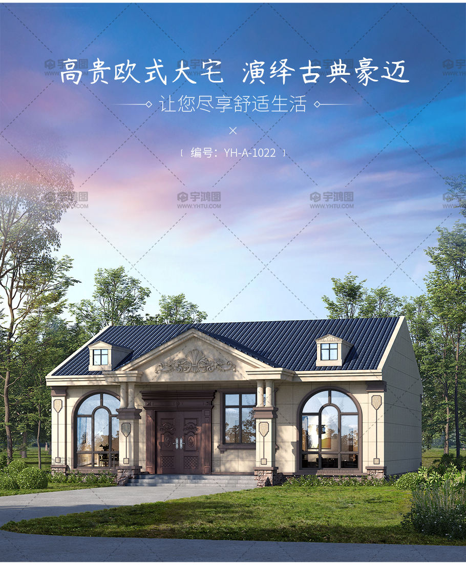 | 風格:歐式 | 層數:一層 | 結構形式:磚混結構 | 圖紙編號:YH-A-1022 |