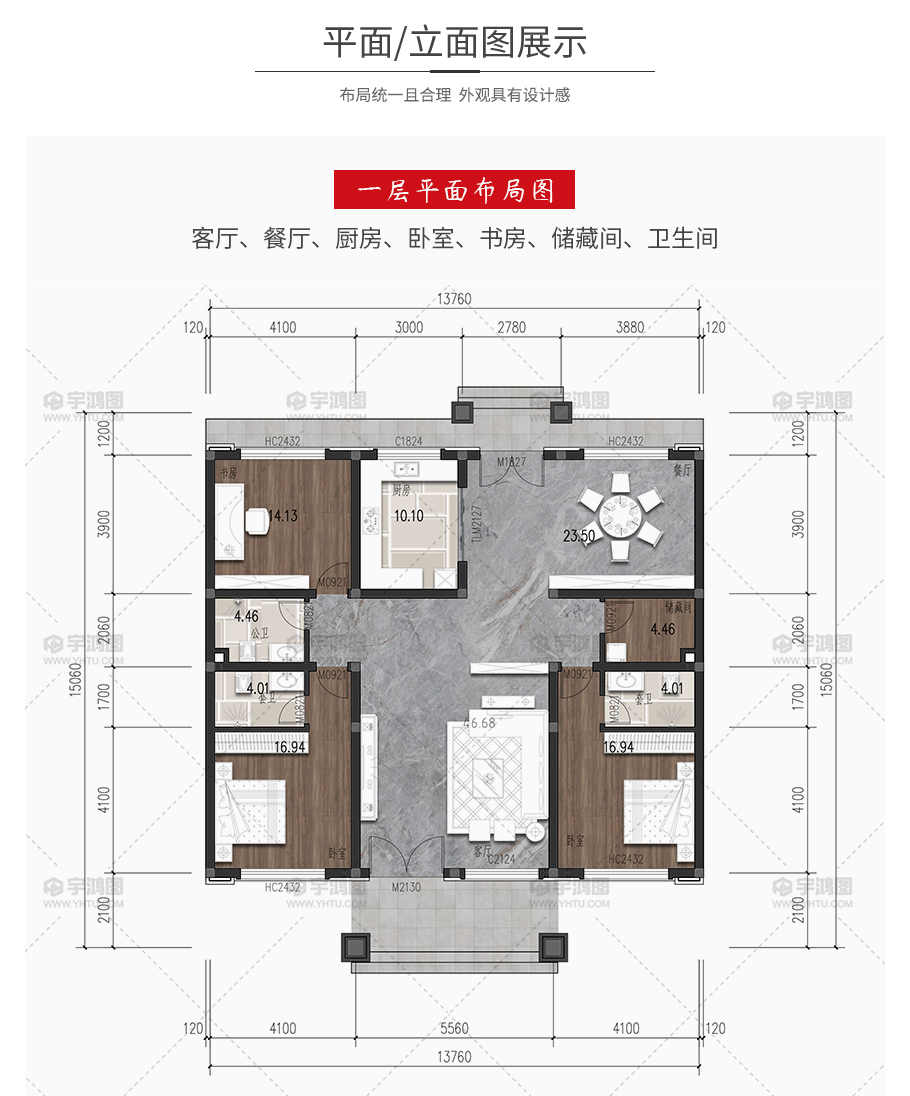 | 開間:13.76米 | 進深:15.06米 | 占地面積:164.7平方米 | 建筑面積:182平方米 |