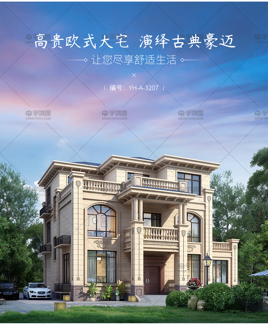 | 風(fēng)格:歐式 | 層數(shù):三層 | 結(jié)構(gòu)形式:磚混結(jié)構(gòu) | 圖紙編號(hào):YH-A-3207 |