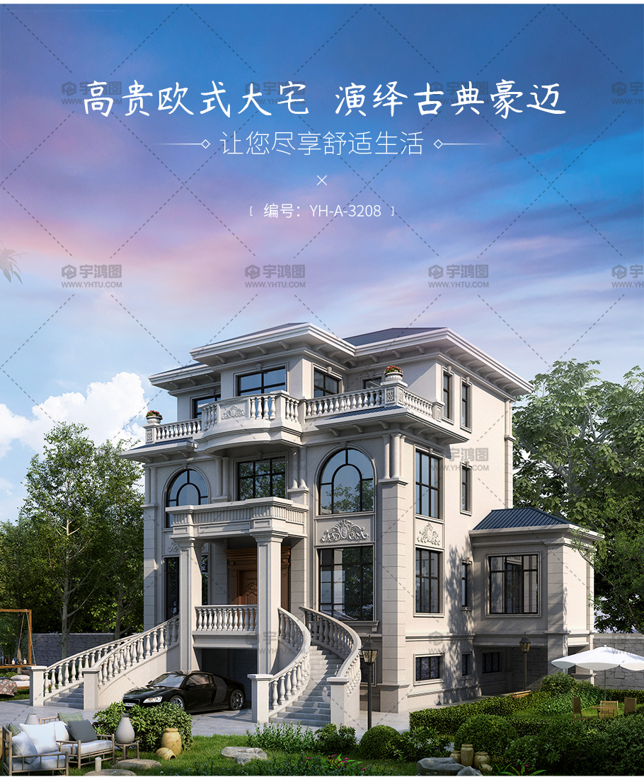 | 風格:歐式 | 層數:三層 | 結構形式:框架結構 | 圖紙編號:YH-A-3208 |