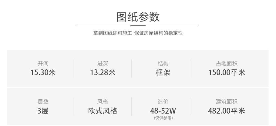 | 開間:15米 | 進深:13.28米 | 占地面積:150平方米 | 建筑面積:482平方米 |