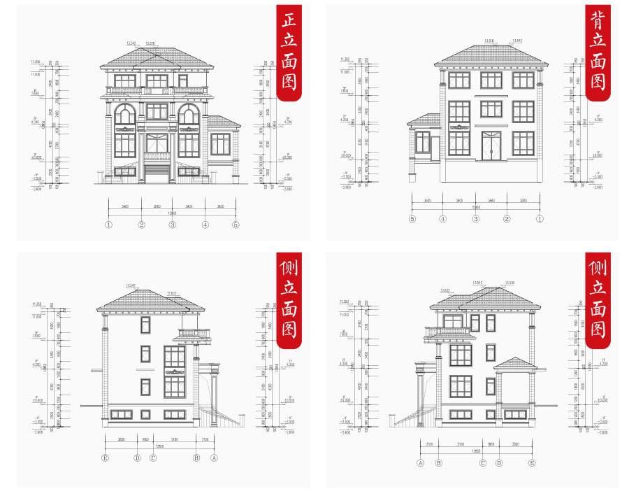 | 建筑圖: | 建筑平面圖:一層平面圖,二層平面圖,三層平面圖; 建筑立面圖:東立面圖,西立面圖,南立面圖,北立面圖,剖面圖; 大樣圖:樓梯詳圖,細部大樣,門窗大樣 |