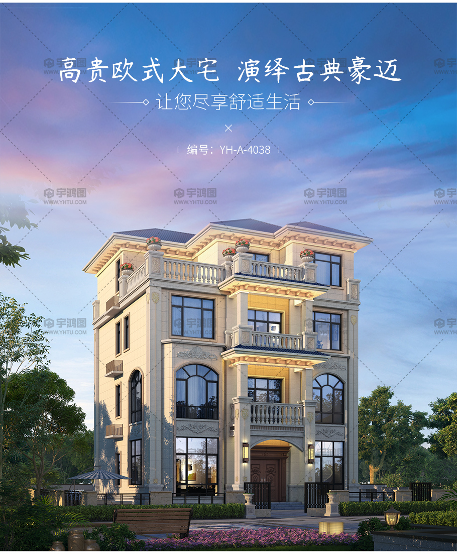 | 風格:歐式 | 層數:四層 | 結構形式:框架結構 | 圖紙編號:YH-A-4038 |