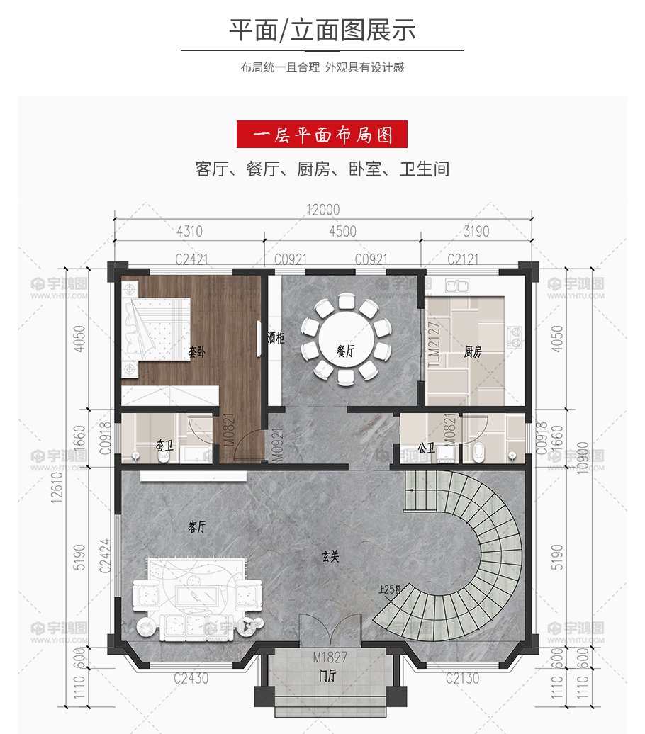 | 開間:12米 | 進深:10.9米 | 占地面積:140.28平方米 | 建筑面積:484.5平方米 |