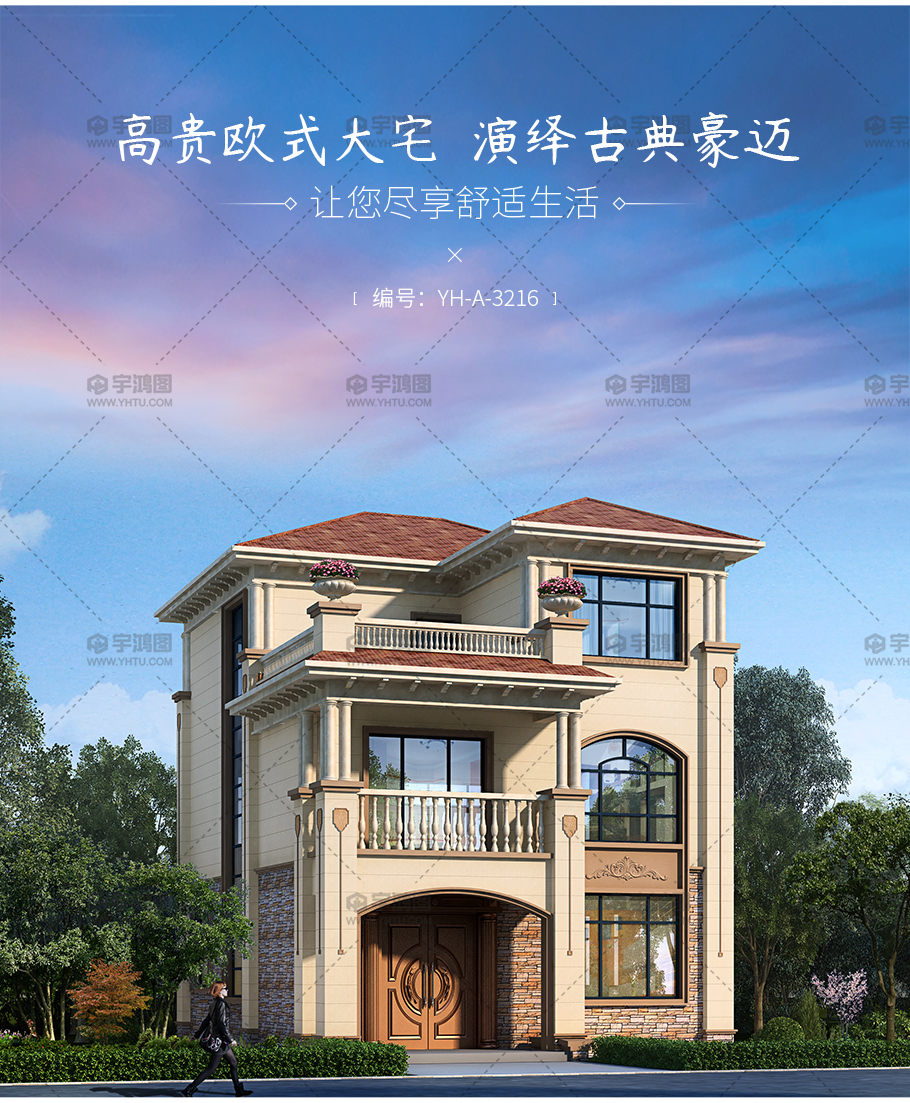 | 風格:歐式 | 層數:三層 | 結構形式:磚混結構 | 圖紙編號:YH-A-3216 |