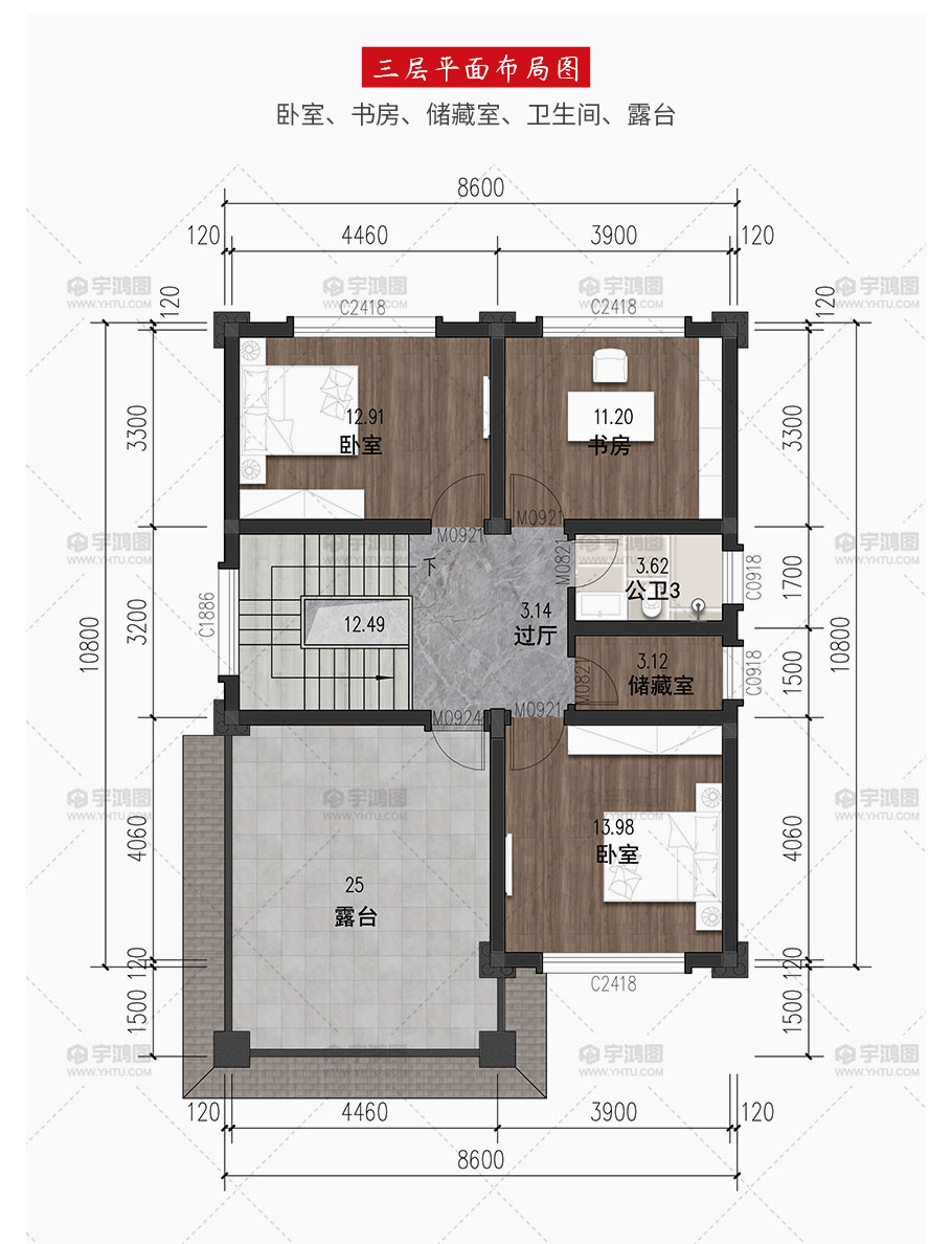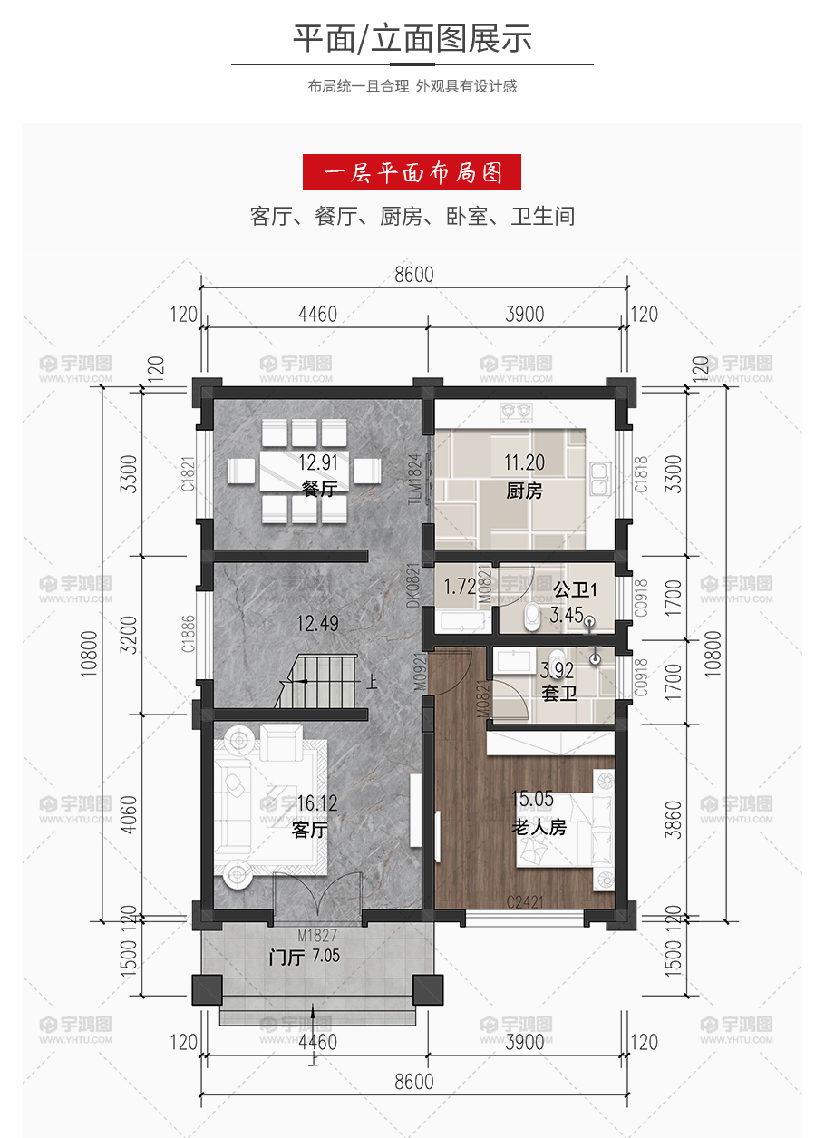 | 開間:8.6米 | 進深:10.8米 | 占地面積:99.5平方米 | 建筑面積:267平方米 |