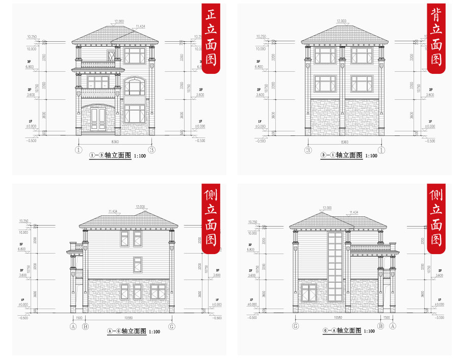 | 建筑圖: | 建筑平面圖:一層平面圖,二層平面圖,三層平面圖; 建筑立面圖:東立面圖,西立面圖,南立面圖,北立面圖,剖面圖; 大樣圖:樓梯詳圖,細部大樣,門窗大樣 |