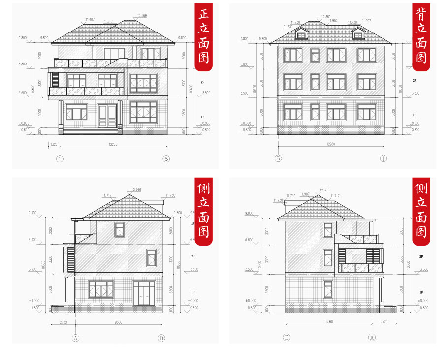 | 建筑圖: | 建筑平面圖:一層平面圖,二層平面圖,三層平面圖; 建筑立面圖:東立面圖,西立面圖,南立面圖,北立面圖,剖面圖; 大樣圖:樓梯詳圖,細部大樣,門窗大樣 |