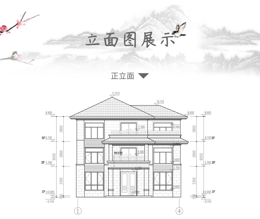 | 風格:新中式 | 層數:三層 | 結構形式:磚混結構 | 圖紙編號:YH-A-3219 |
