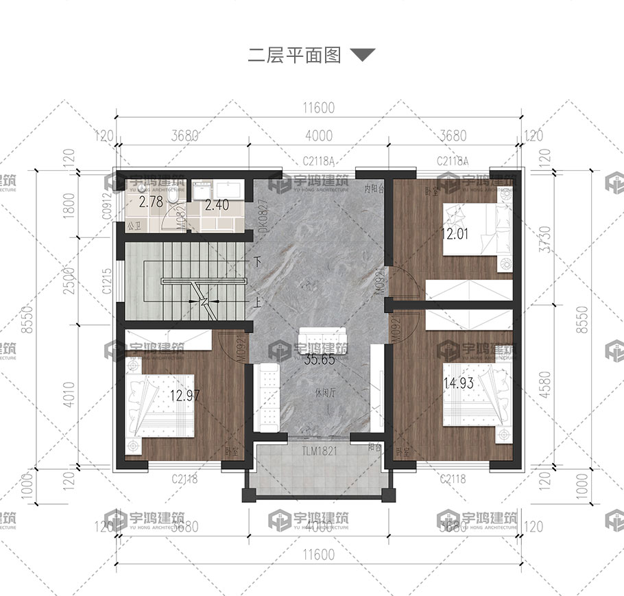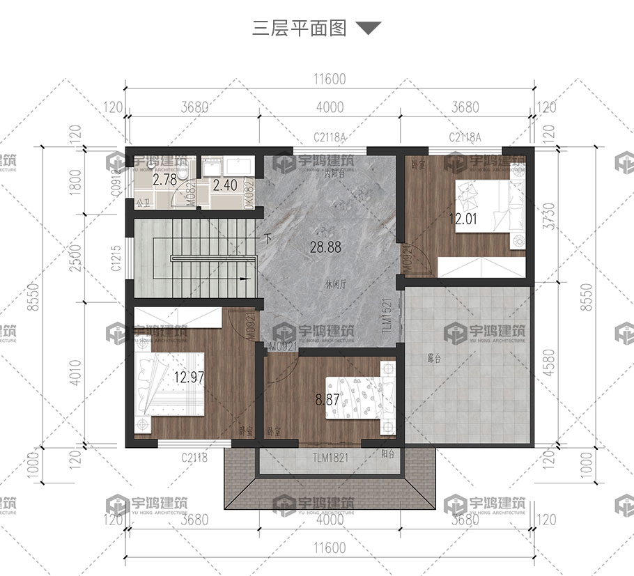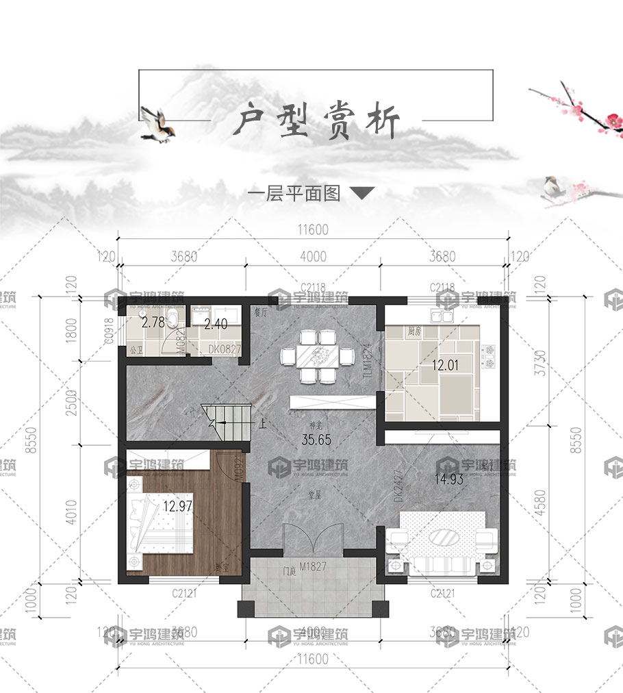 | 開間:11.6米 | 進深:8.55米 | 占地面積:103.31平方米 | 建筑面積:282.03平方米 |