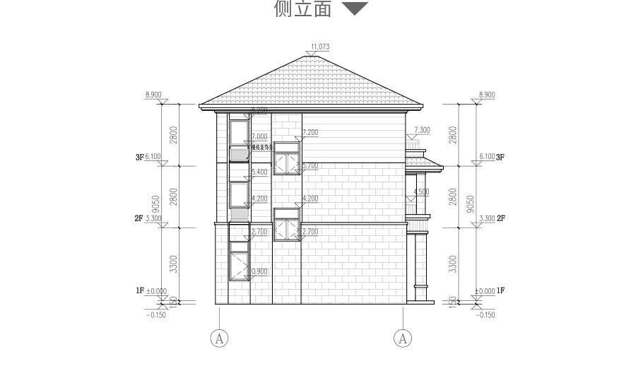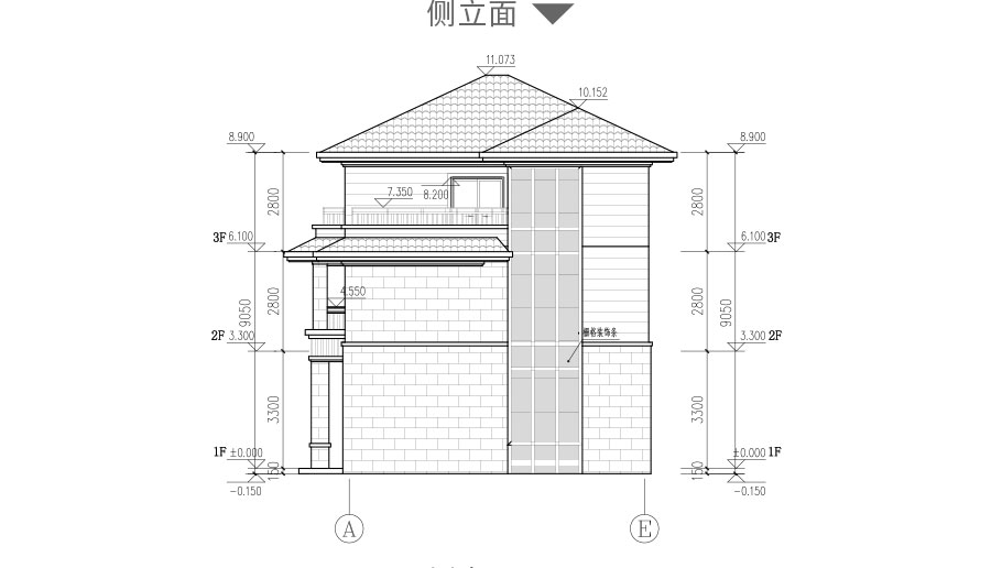 | 給排水圖: | 樓層給排水平面圖:一層給排水平面圖,二層給排水平面圖,三層給排水平面圖; 屋頂給排水平面圖; 衛生間排水系統圖 |