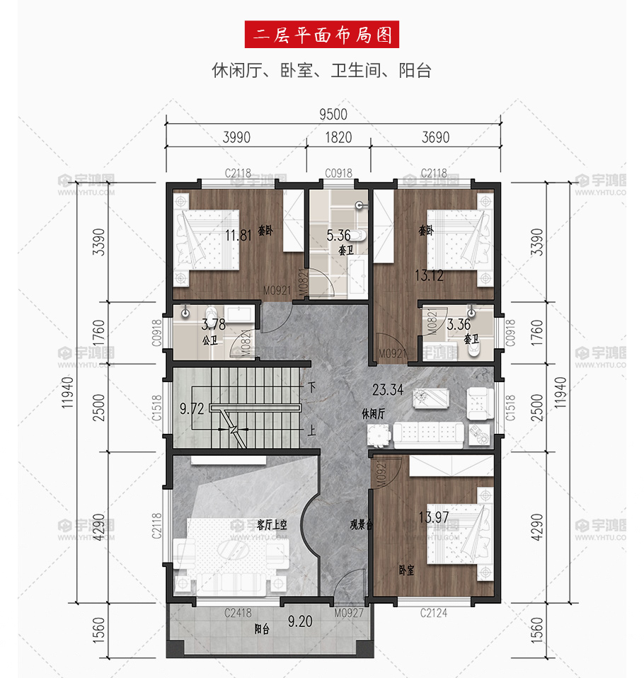 | 開間:9.5米 | 進深:11.94米 | 占地面積:122.6平方米 | 建筑面積:234平方米 |