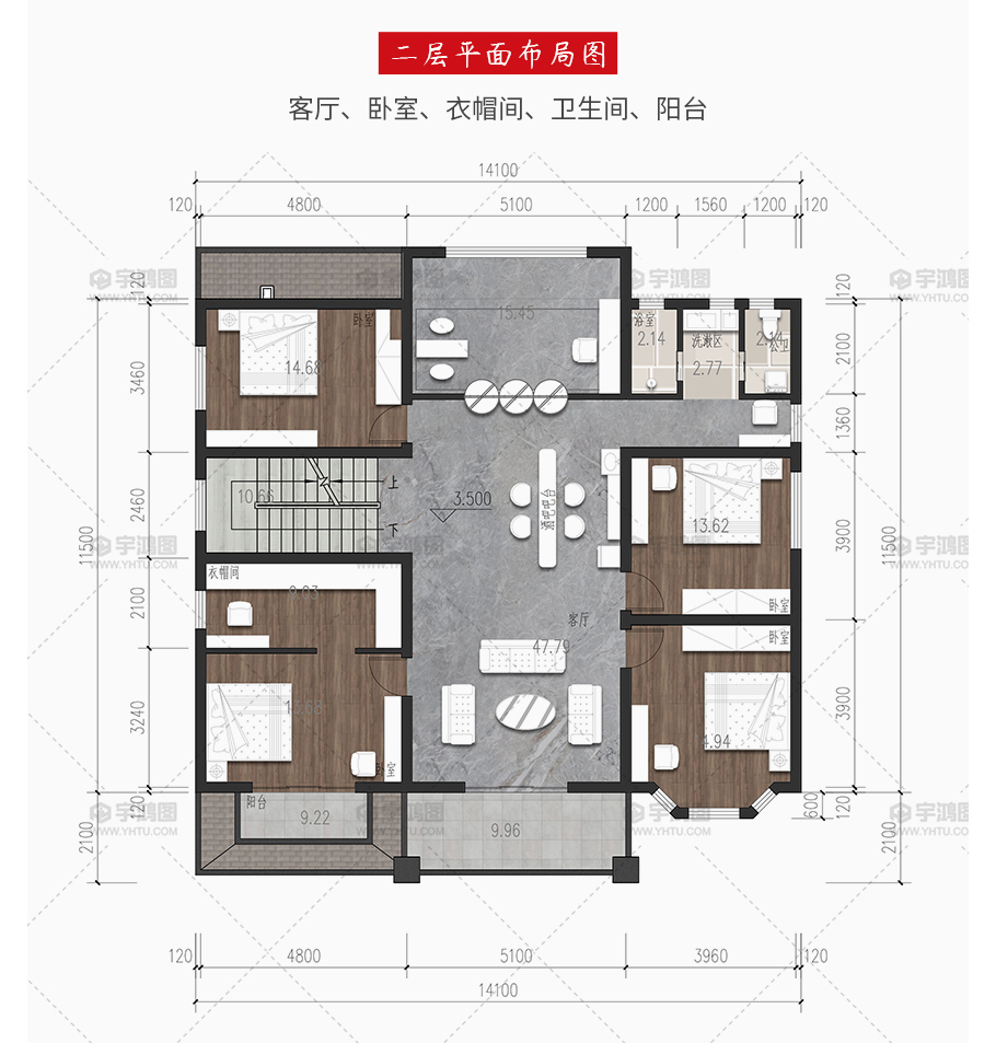 | 開間:14.1米 | 進深:11.5米 | 占地面積:178.8平方米 | 建筑面積:352.39平方米 |