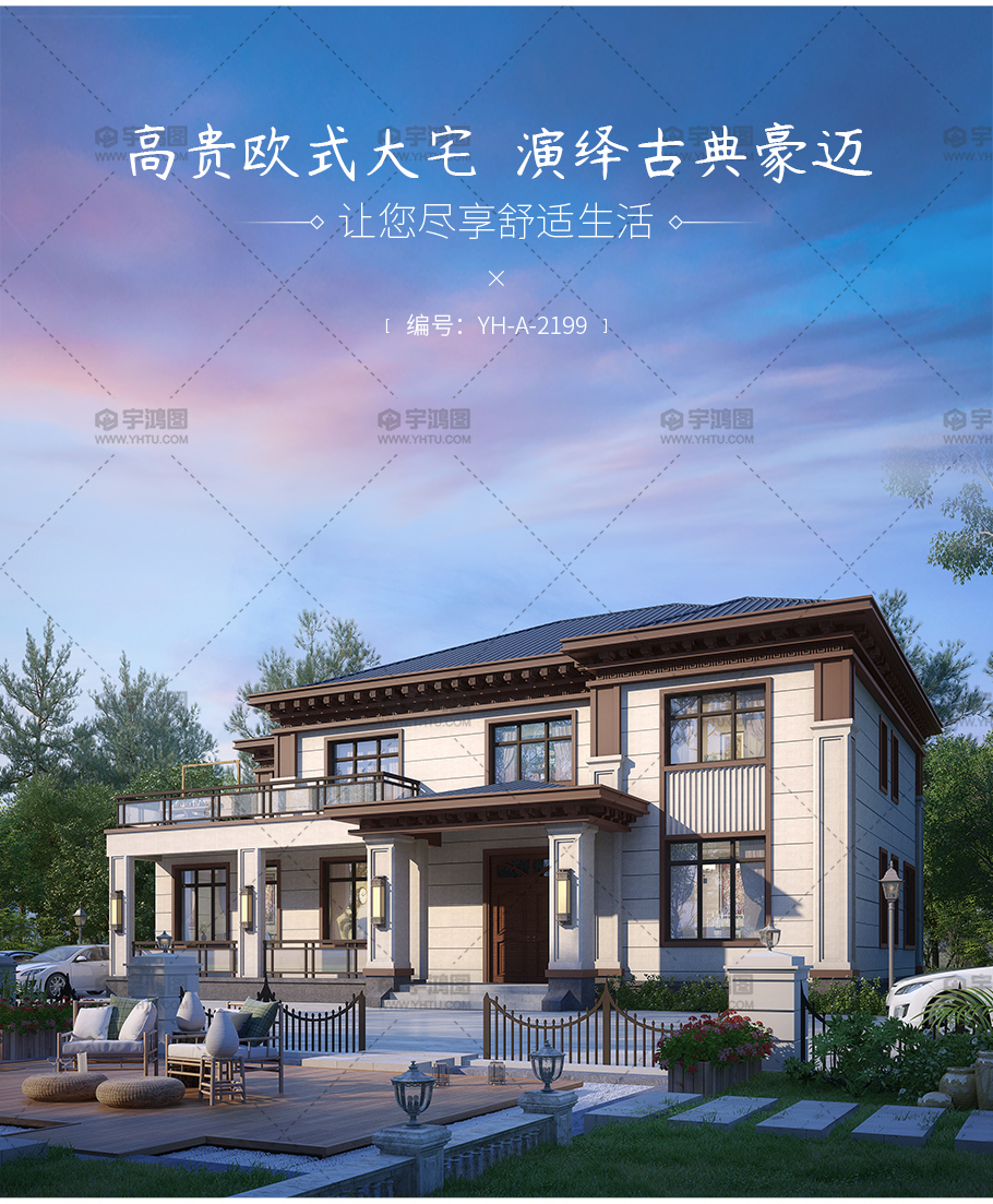 | 風格:歐式 | 層數:二層 | 結構形式:磚混結構 | 圖紙編號:YH-A-2199 |