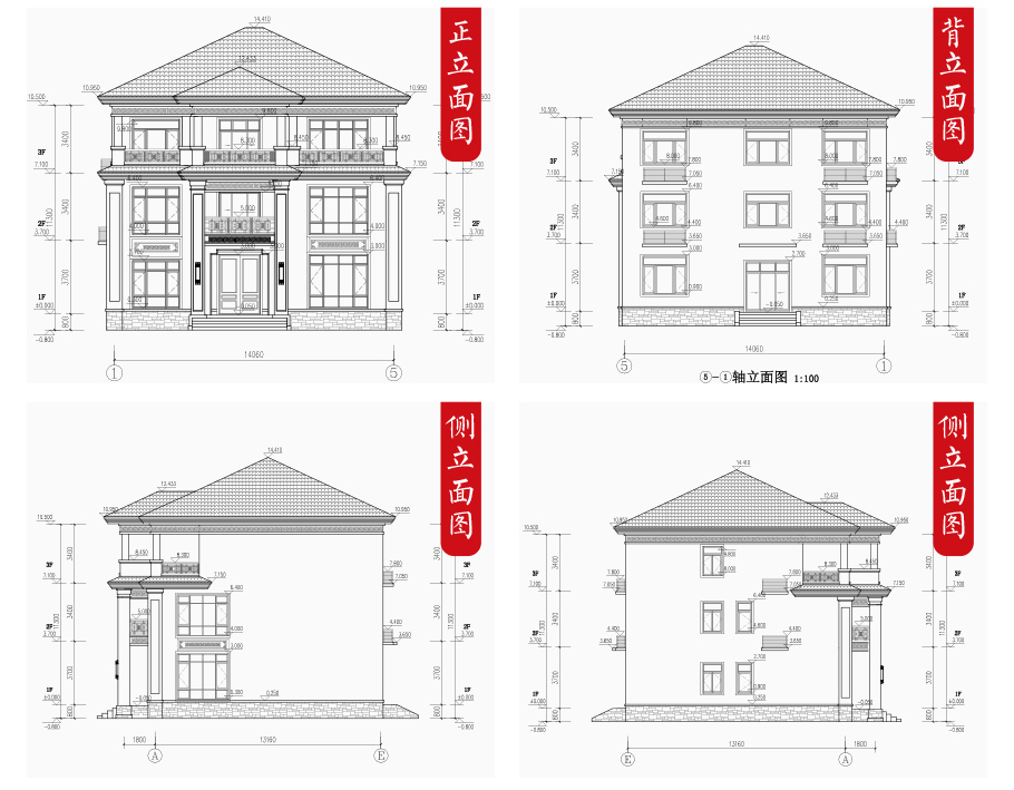 | 建筑圖: | 建筑平面圖:一層平面圖,二層平面圖,三層平面圖; 建筑立面圖:東立面圖,西立面圖,南立面圖,北立面圖,剖面圖; 大樣圖:樓梯詳圖,細部大樣,門窗大樣 |