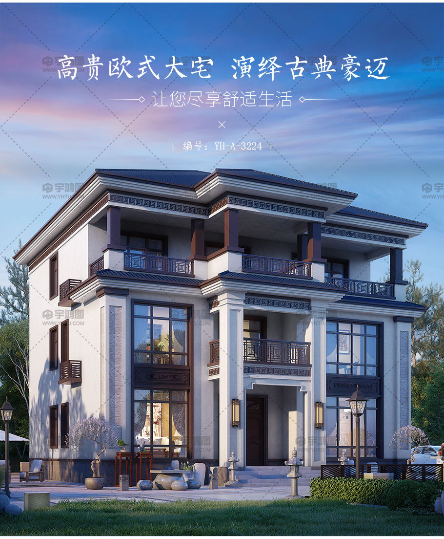 | 風格:歐式 | 層數:三層 | 結構形式:磚混結構 | 圖紙編號:YH-A-3224 |