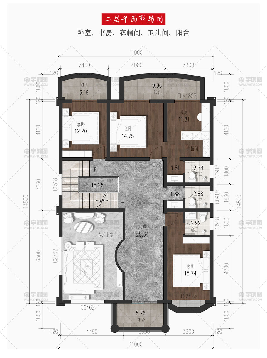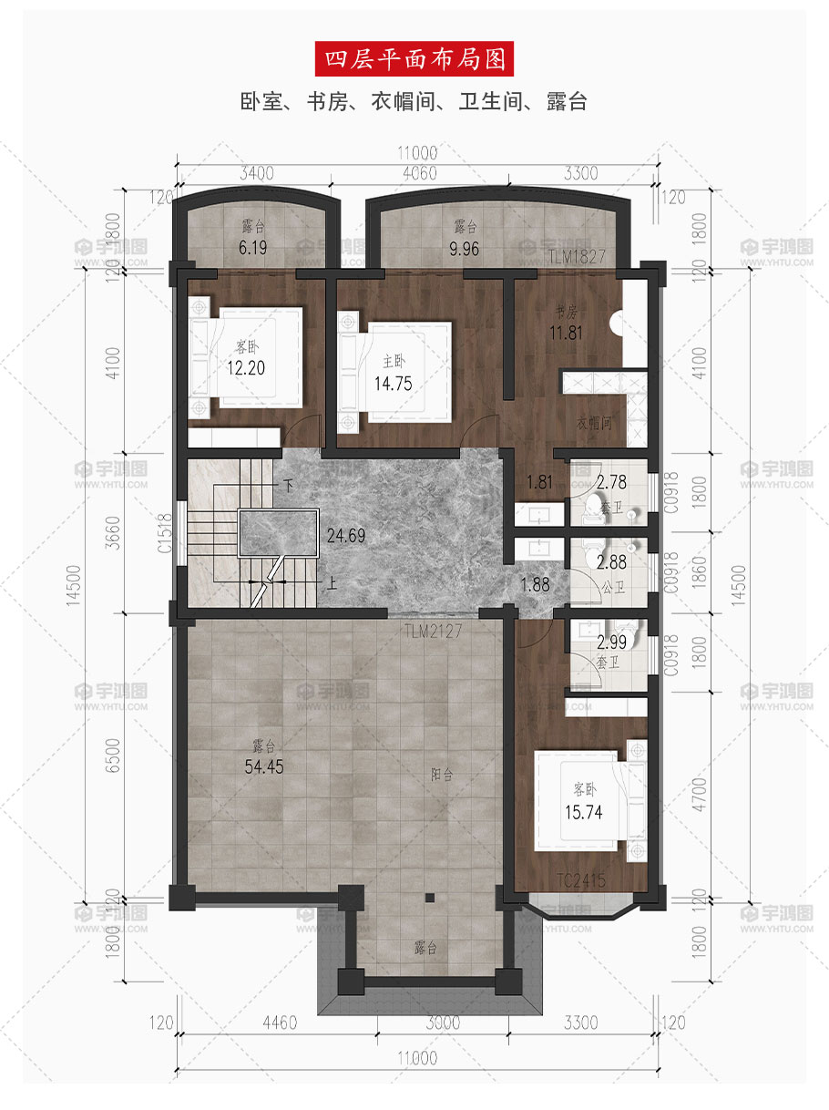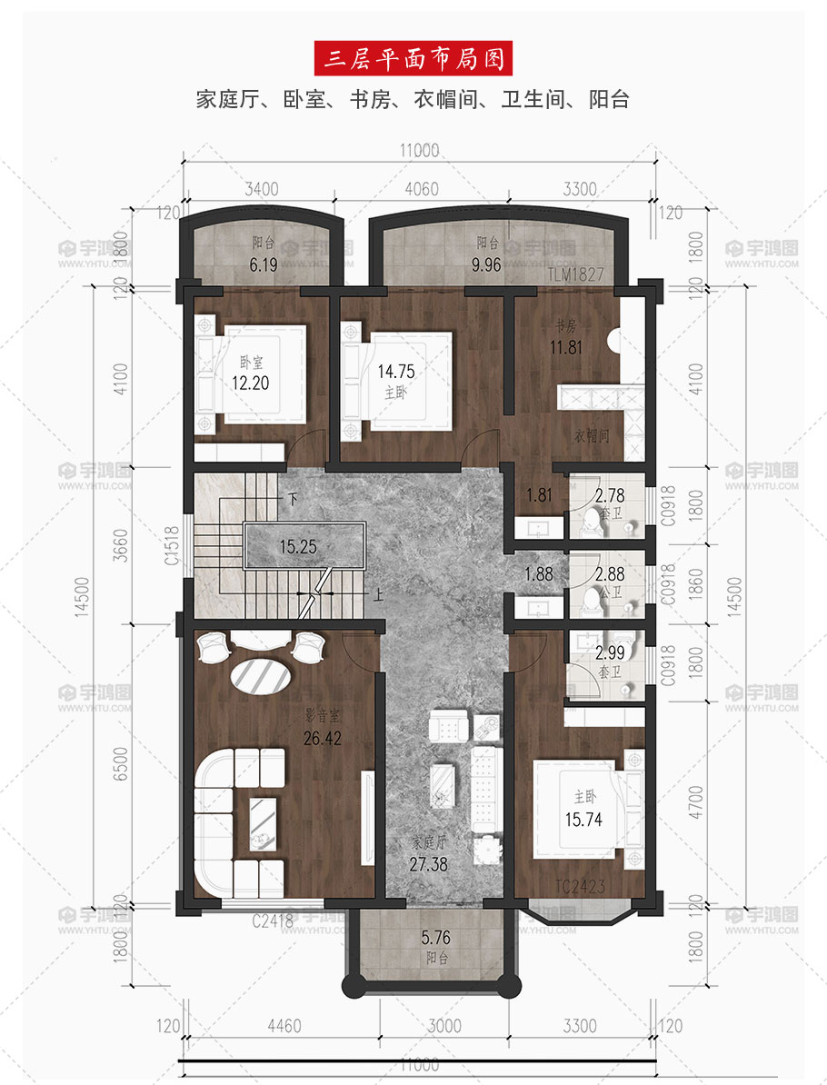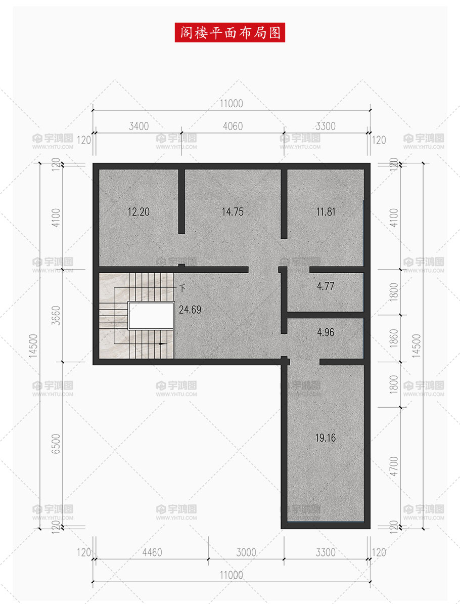| 開間:11米 | 進深:14.5米 | 占地面積:181平方米 | 建筑面積:597.8平方米 |