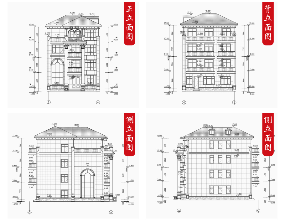 | 建筑圖: | 建筑平面圖:一層平面圖,二層平面圖,三層平面圖,四層平面圖; 建筑立面圖:東立面圖,西立面圖,南立面圖,北立面圖,剖面圖; 大樣圖:樓梯詳圖,細部大樣,門窗大樣 |