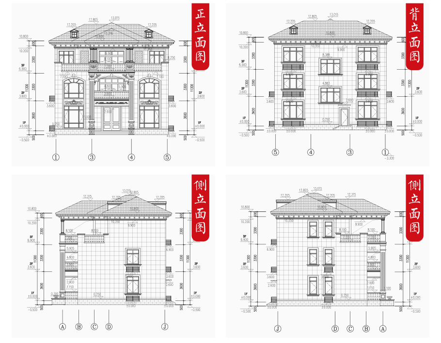 | 建筑圖: | 建筑平面圖:一層平面圖,二層平面圖,三層平面圖; 建筑立面圖:東立面圖,西立面圖,南立面圖,北立面圖,剖面圖; 大樣圖:樓梯詳圖,細部大樣,門窗大樣 |