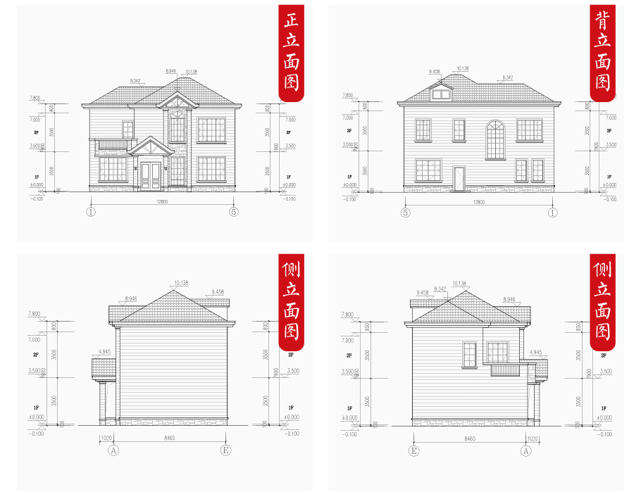 | 建筑圖: | 建筑平面圖:一層平面圖,二層平面圖; 建筑立面圖:東立面圖,西立面圖,南立面圖,北立面圖,剖面圖; 大樣圖:樓梯詳圖,細部大樣,門窗大樣 |