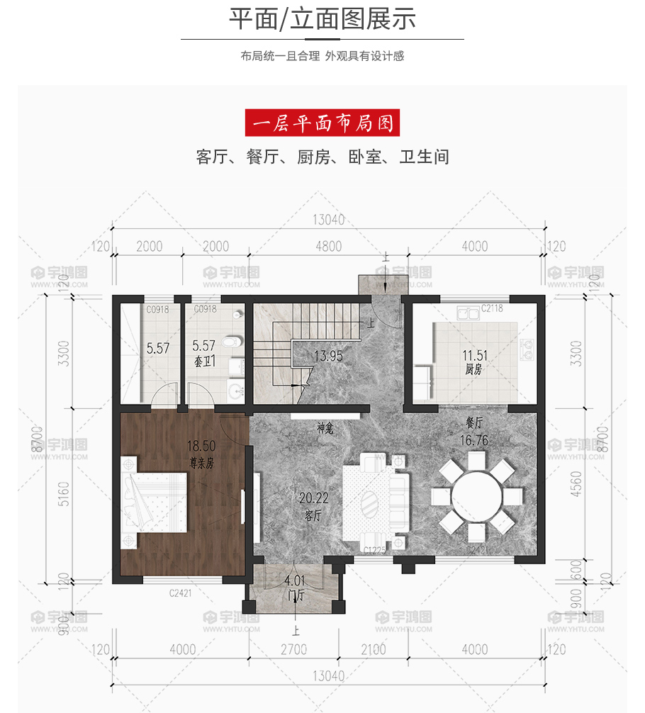 | 開間:13.04米 | 進深:8.7米 | 占地面積:112.18平方米 | 建筑面積:214.8平方米 |