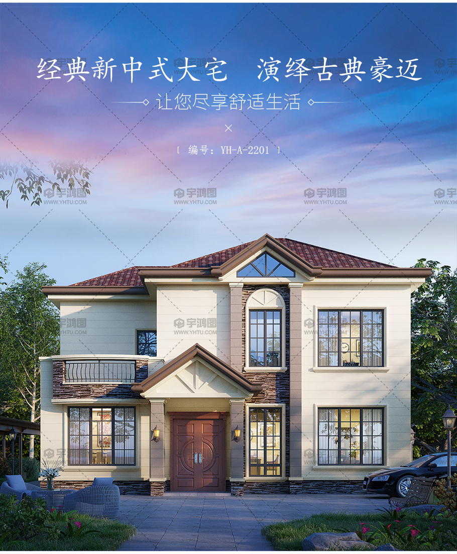 | 風格:美式 | 層數:二層 | 結構形式:磚混結構 | 圖紙編號:YH-A-2201 |