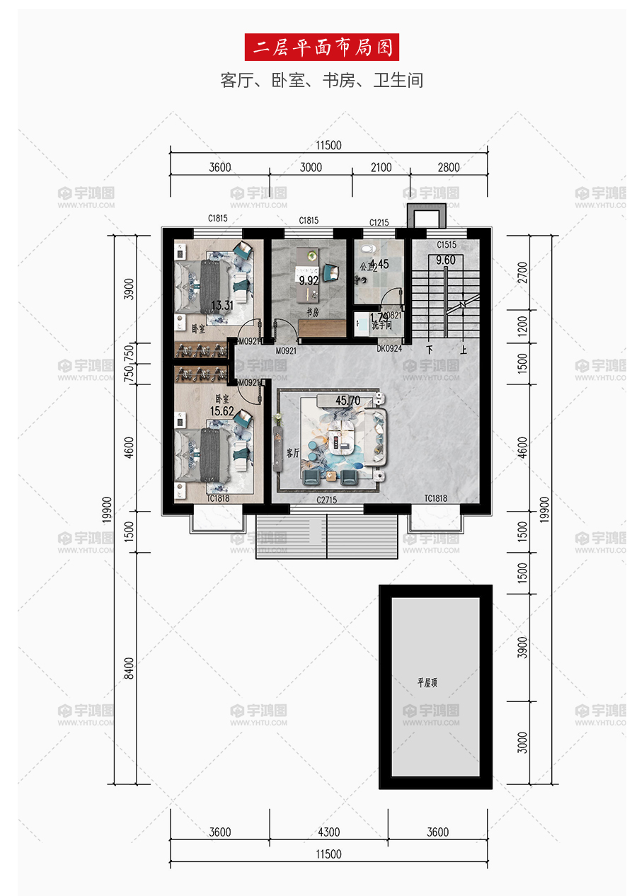 | 風格:歐式 | 層數:二層 | 結構形式:磚混結構 | 圖紙編號:YH-A-2208 |