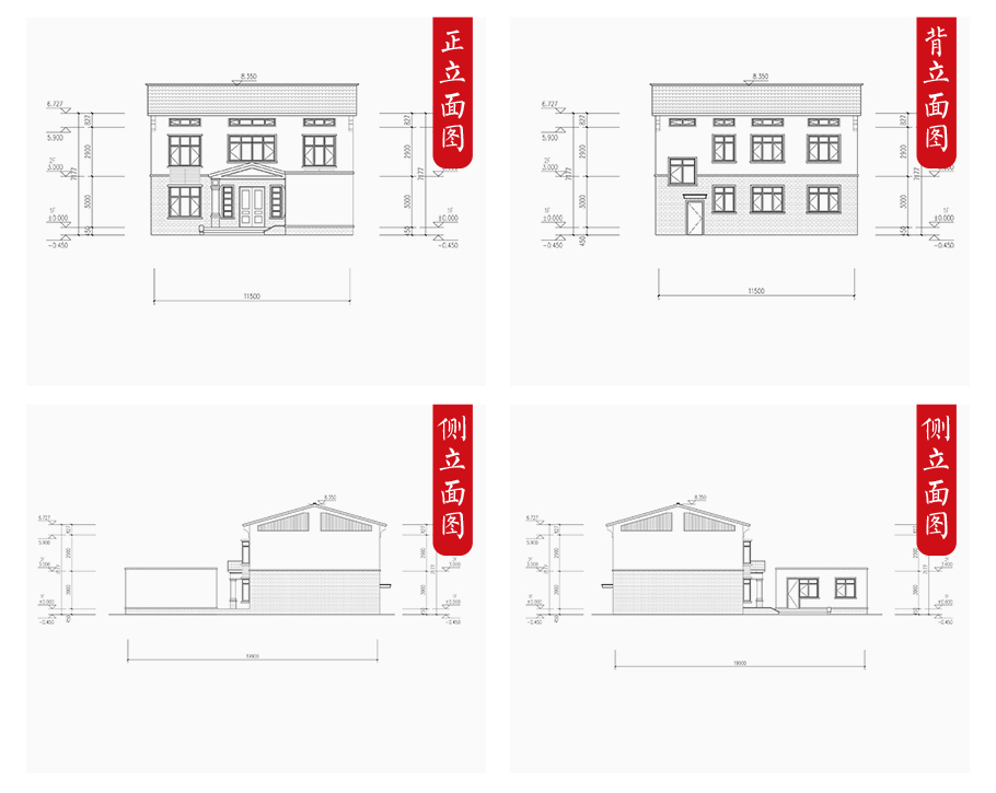 | 建筑圖: | 建筑平面圖:一層平面圖,二層平面圖; 建筑立面圖:東立面圖,西立面圖,南立面圖,北立面圖,剖面圖; 大樣圖:樓梯詳圖,細部大樣,門窗大樣 |