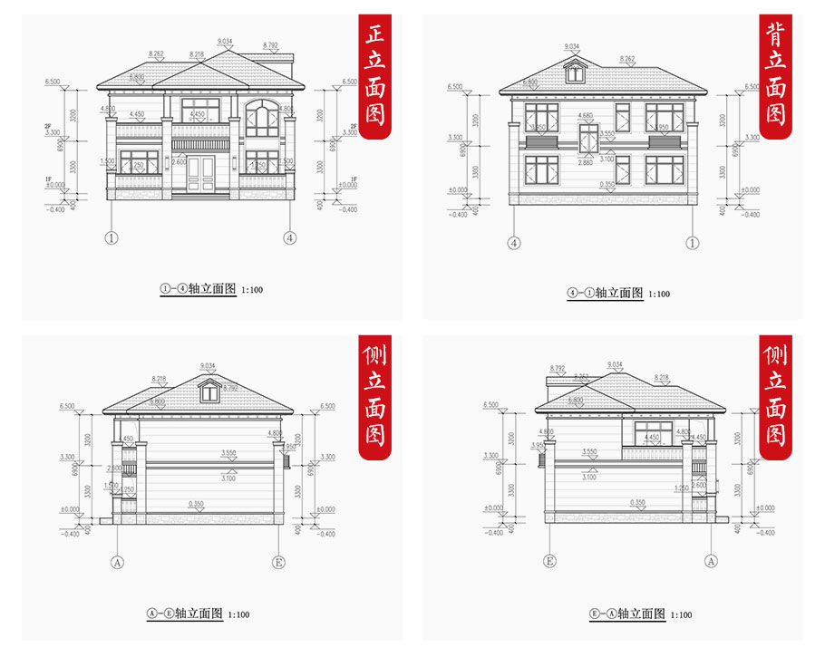 | 建筑圖: | 建筑平面圖:一層平面圖,二層平面圖; 建筑立面圖:東立面圖,西立面圖,南立面圖,北立面圖,剖面圖; 大樣圖:樓梯詳圖,細部大樣,門窗大樣 |
