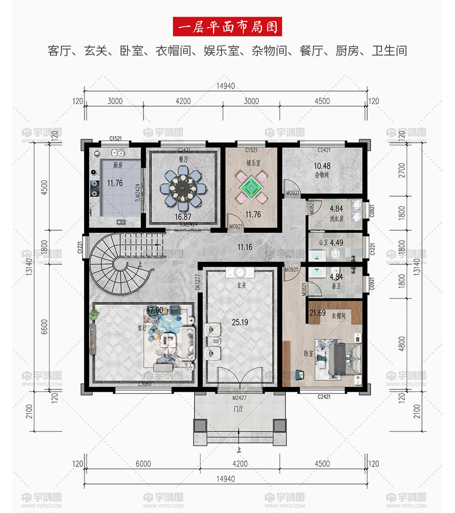 | 開間:14.94米 | 進深:13.14米 | 占地面積:206平方米 | 建筑面積:515.03平方米 |