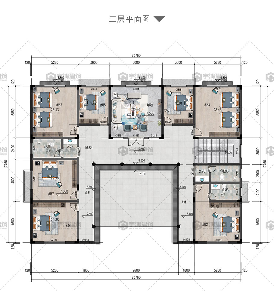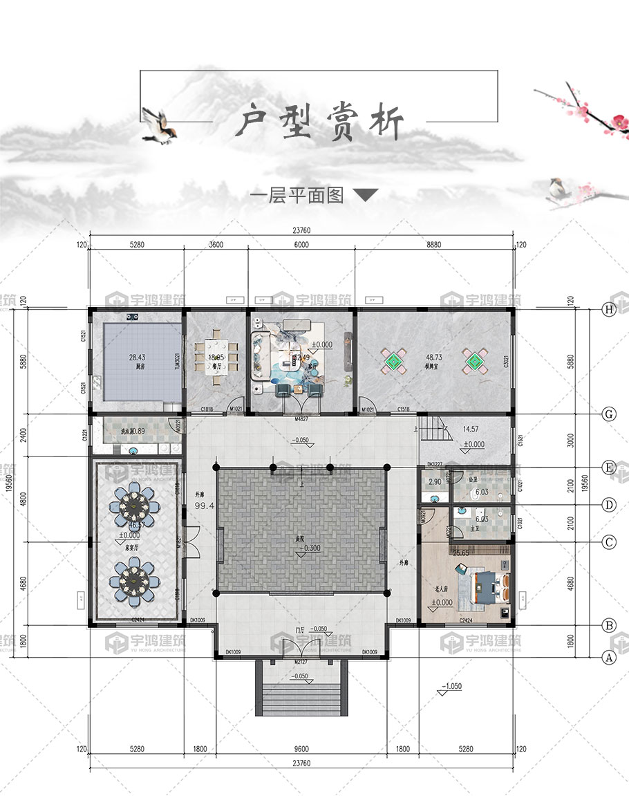 | 開(kāi)間:23.76米 | 進(jìn)深:19.56米 | 占地面積:449.7平方米 | 建筑面積:1083.45平方米 |