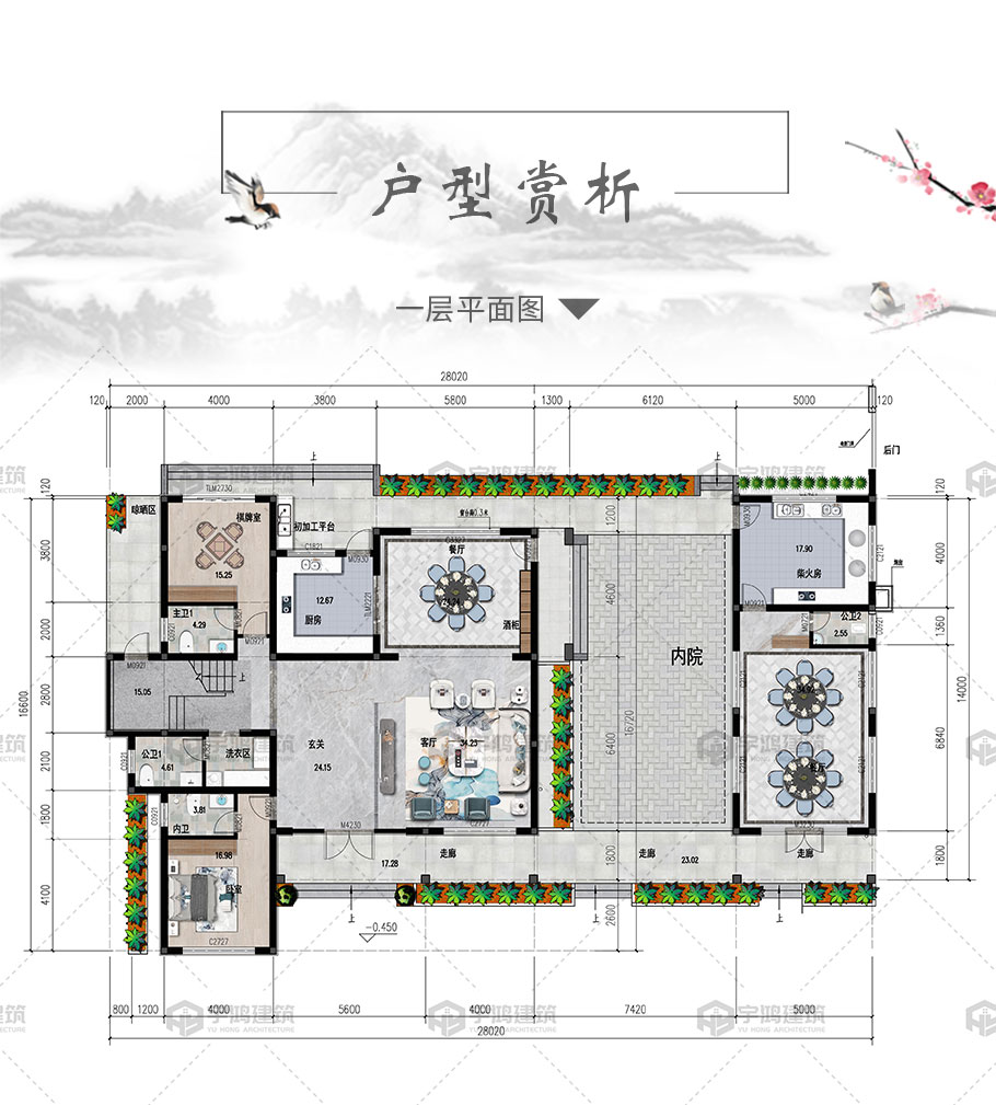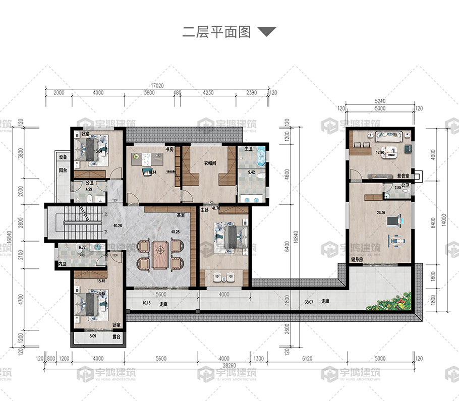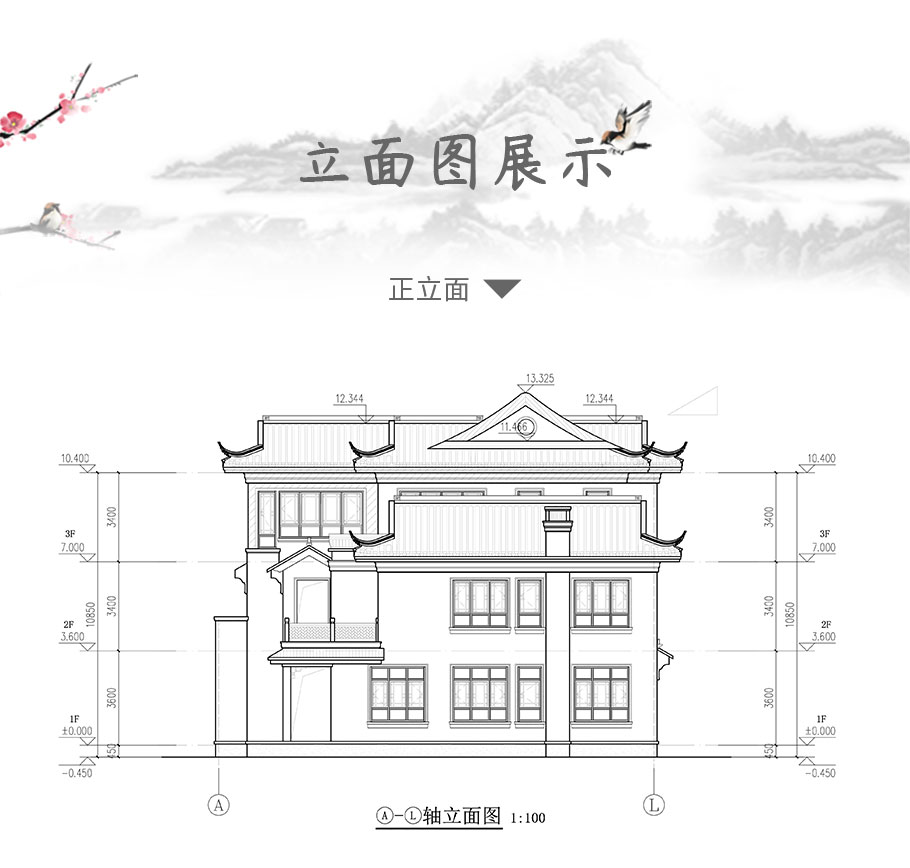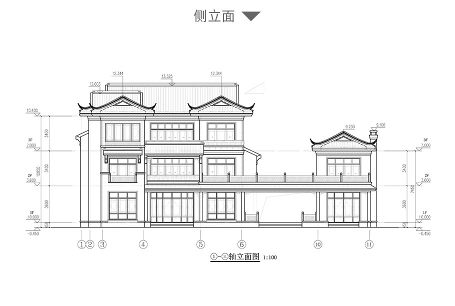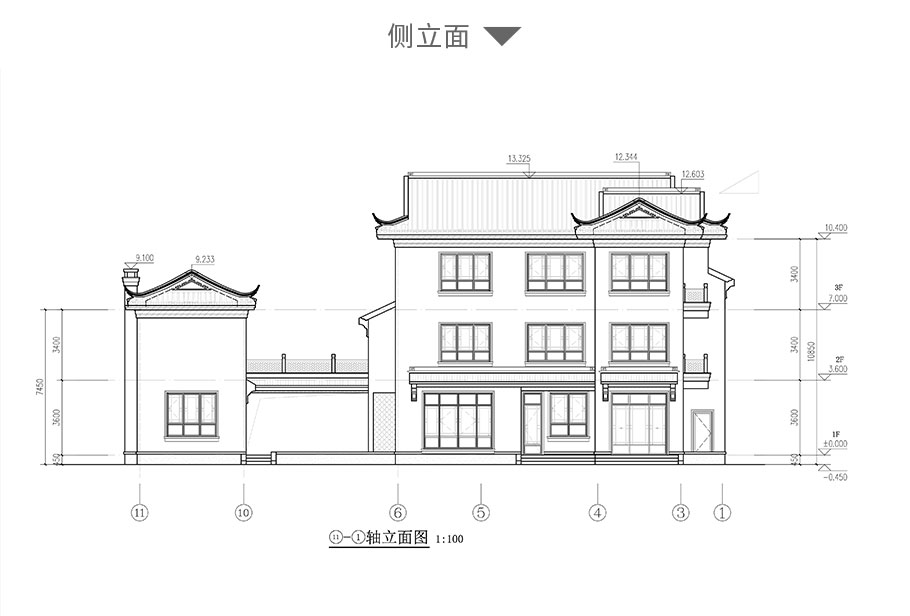 建筑立面圖:東立面圖,西立面圖,南立面圖,北立面圖,剖面圖;