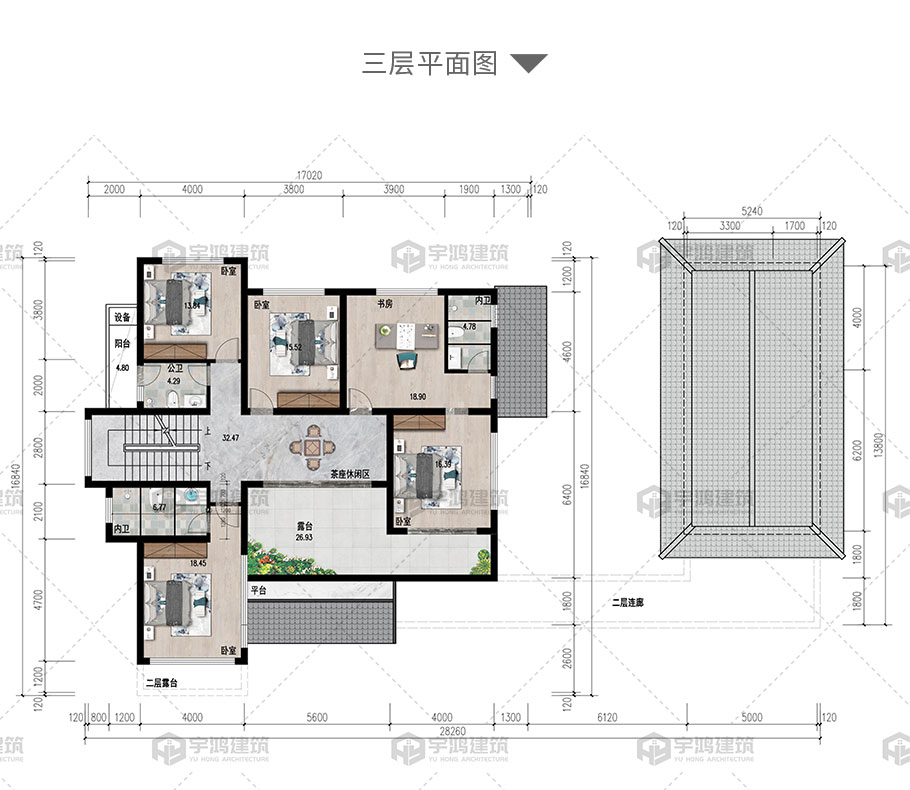 建筑平面圖:一層平面圖,二層平面圖,三層平面圖;