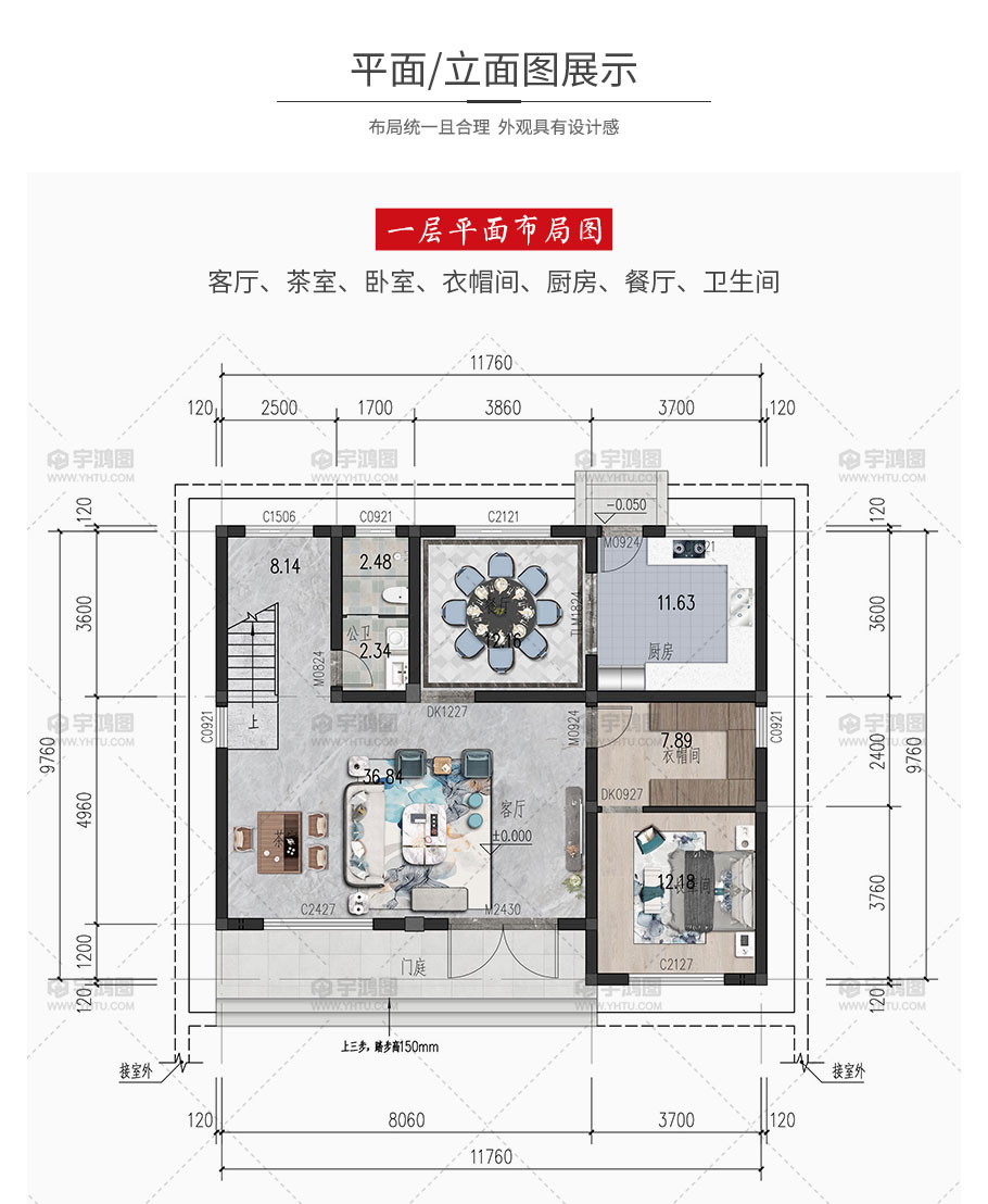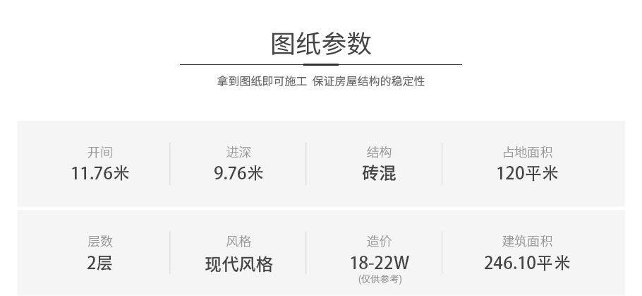 | 開間:11.76米 | 進深:9.76米 | 占地面積:120平方米 | 建筑面積:246平方米 |