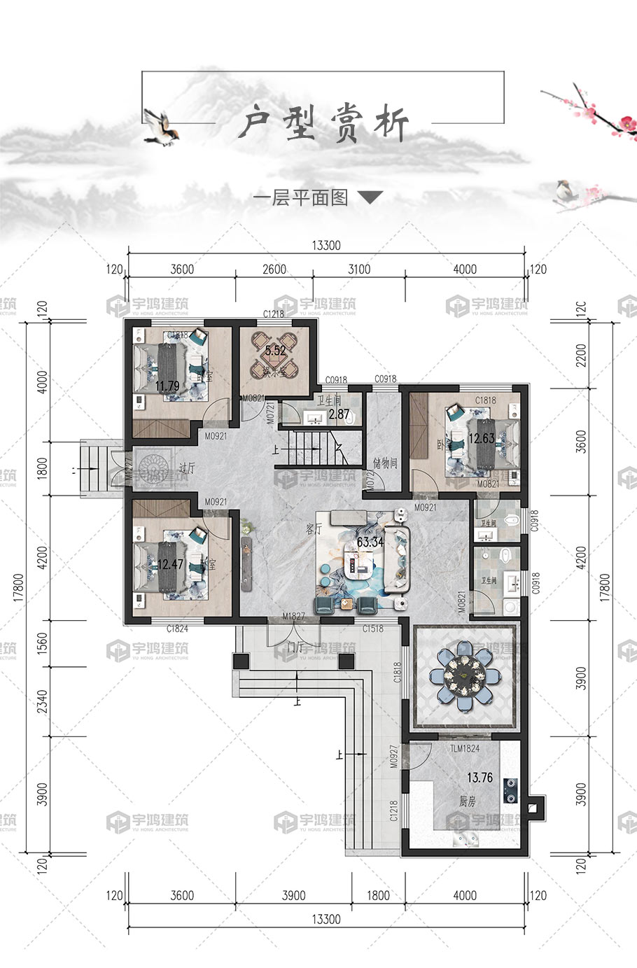 | 開間:13.3米 | 進深:17.8米 | 占地面積:171平方米 | 建筑面積:286平方米 |
