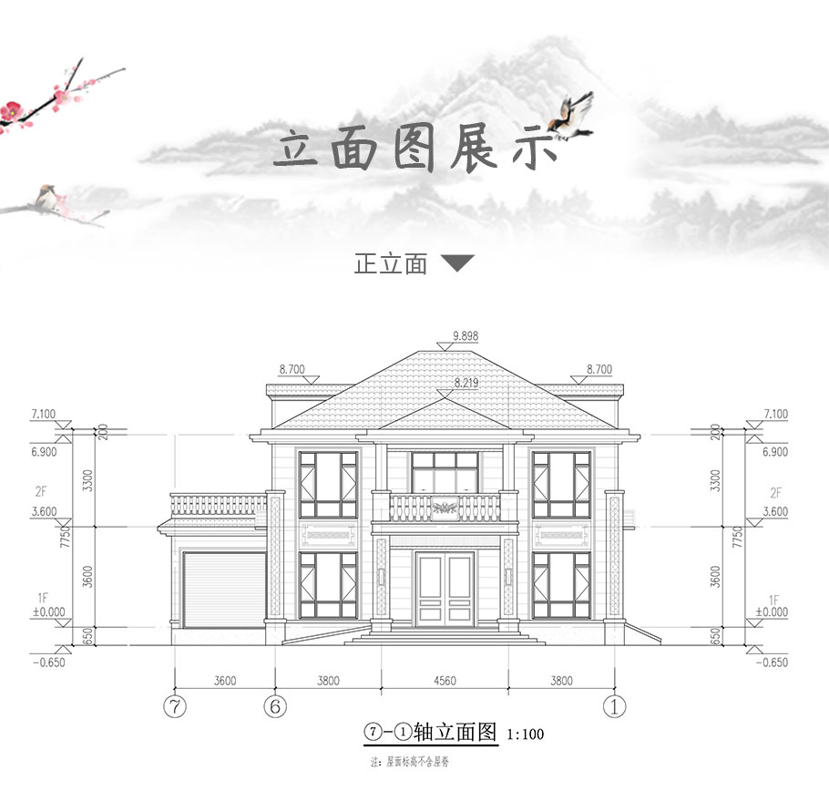 | 建筑圖: | 建筑平面圖:一層平面圖,二層平面圖; 建筑立面圖:東立面圖,西立面圖,南立面圖,北立面圖,剖面圖; 大樣圖:樓梯詳圖,細部大樣,門窗大樣 |