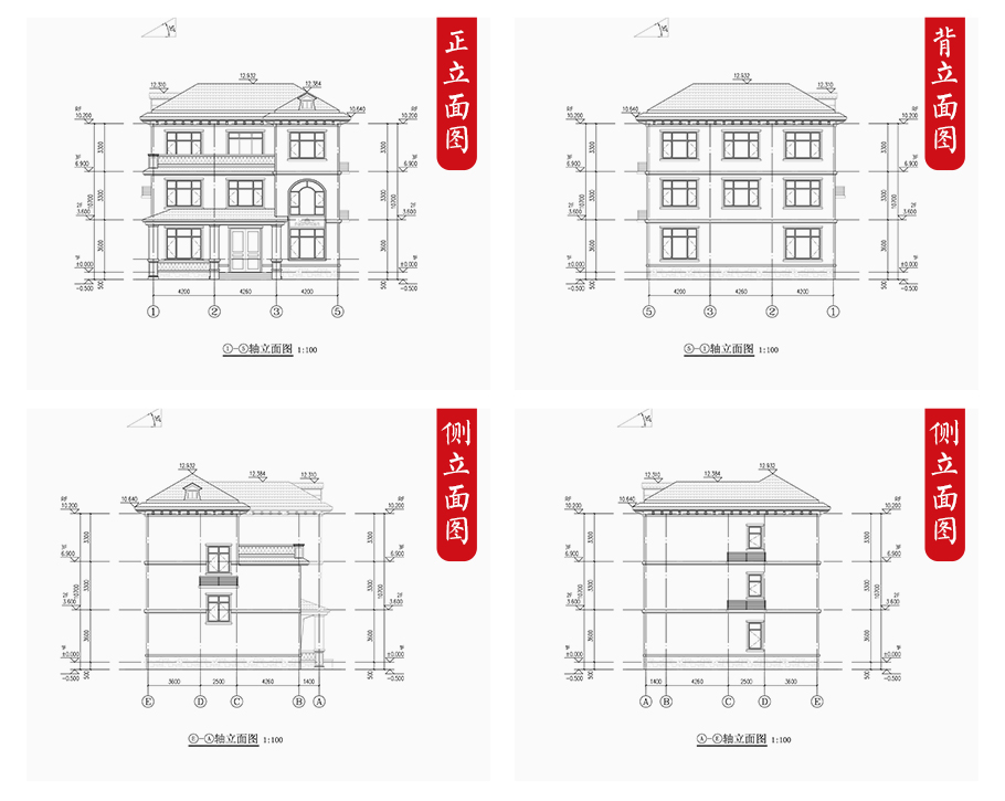 建筑平面圖:一層平面圖,二層平面圖,三層平面圖; 建筑立面圖:東立面圖,西立面圖,南立面圖,北立面圖,剖面圖; 大樣圖:樓梯詳圖,細(xì)部大樣,門窗大樣 |