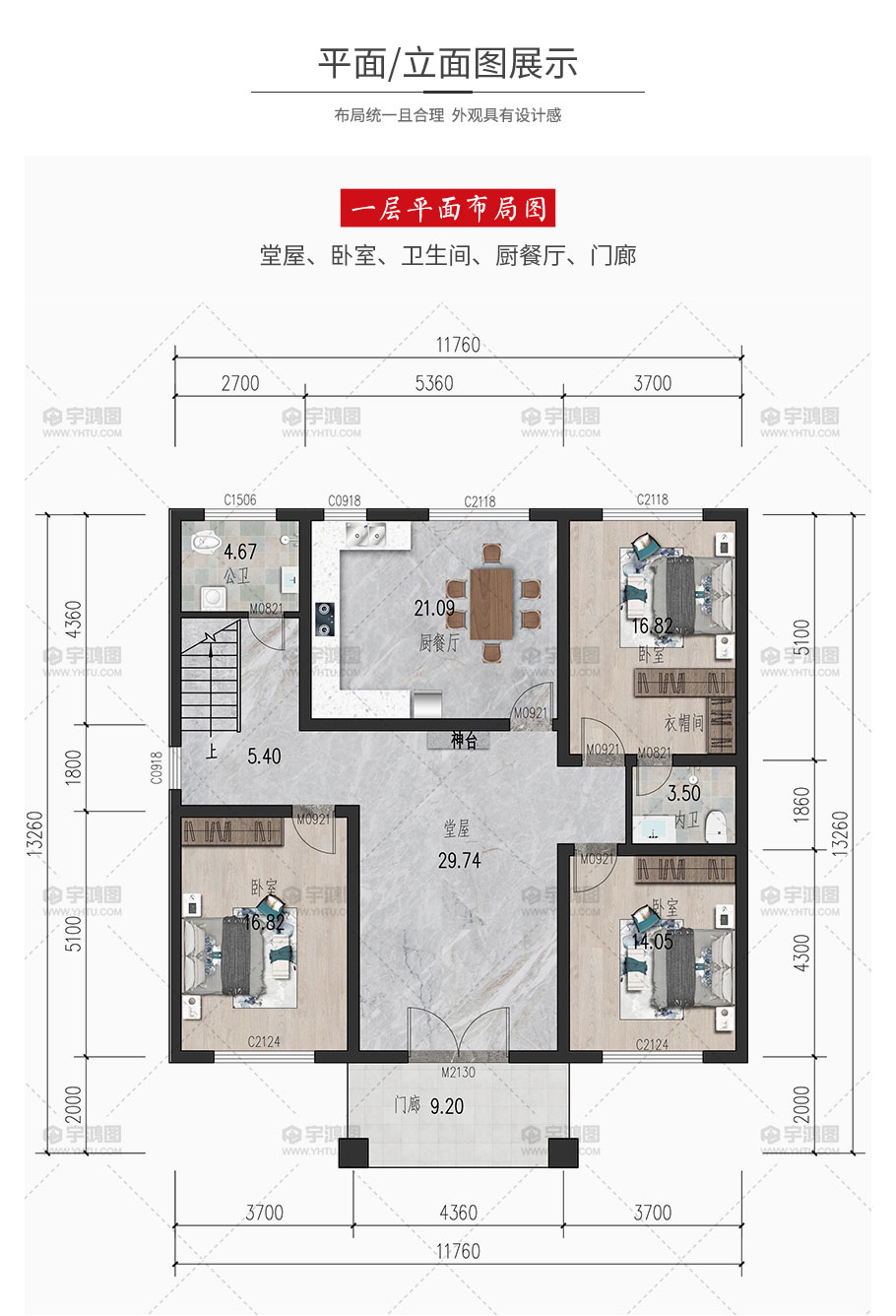 | 開間:11.7米 | 進深:13.2米 | 占地面積:148平方米 | 建筑面積:286平方米 |