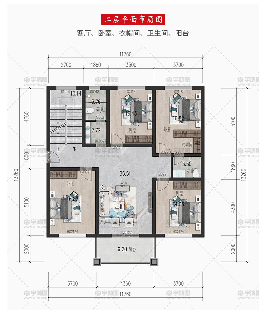 | 風格:歐式 | 層數:二層 | 結構形式:框架結構 | 圖紙編號:YH-A-2205 |