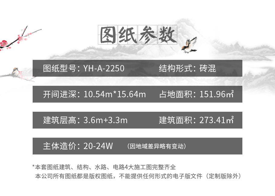 | 風(fēng)格:新中式 | 層數(shù):二層 | 結(jié)構(gòu)形式:磚混結(jié)構(gòu) | 圖紙編號(hào):YH-A-2250 |