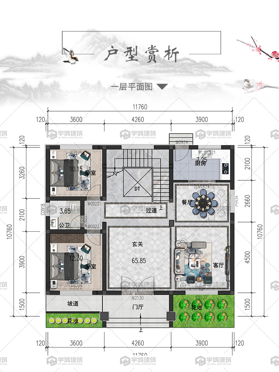 | 開間:11.7米 | 進深:10.7米 | 占地面積:121.4平方米 | 建筑面積:291平方米 |