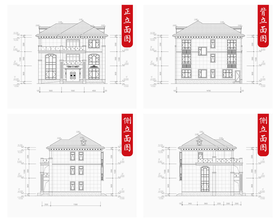 建筑平面圖:一層平面圖,二層平面圖,三層平面圖; 建筑立面圖:東立面圖,西立面圖,南立面圖,北立面圖,剖面圖; 大樣圖:樓梯詳圖,細部大樣,門窗大樣 |