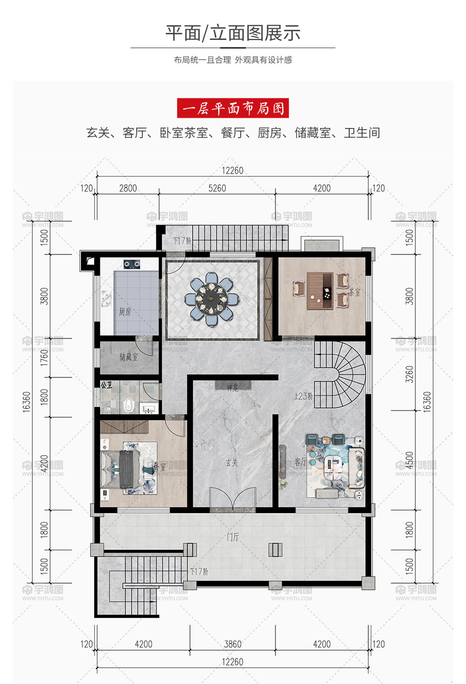 | 開間:12.26米 | 進深:16.36米 | 占地面積:165平方米 | 建筑面積:452.8平方米 |